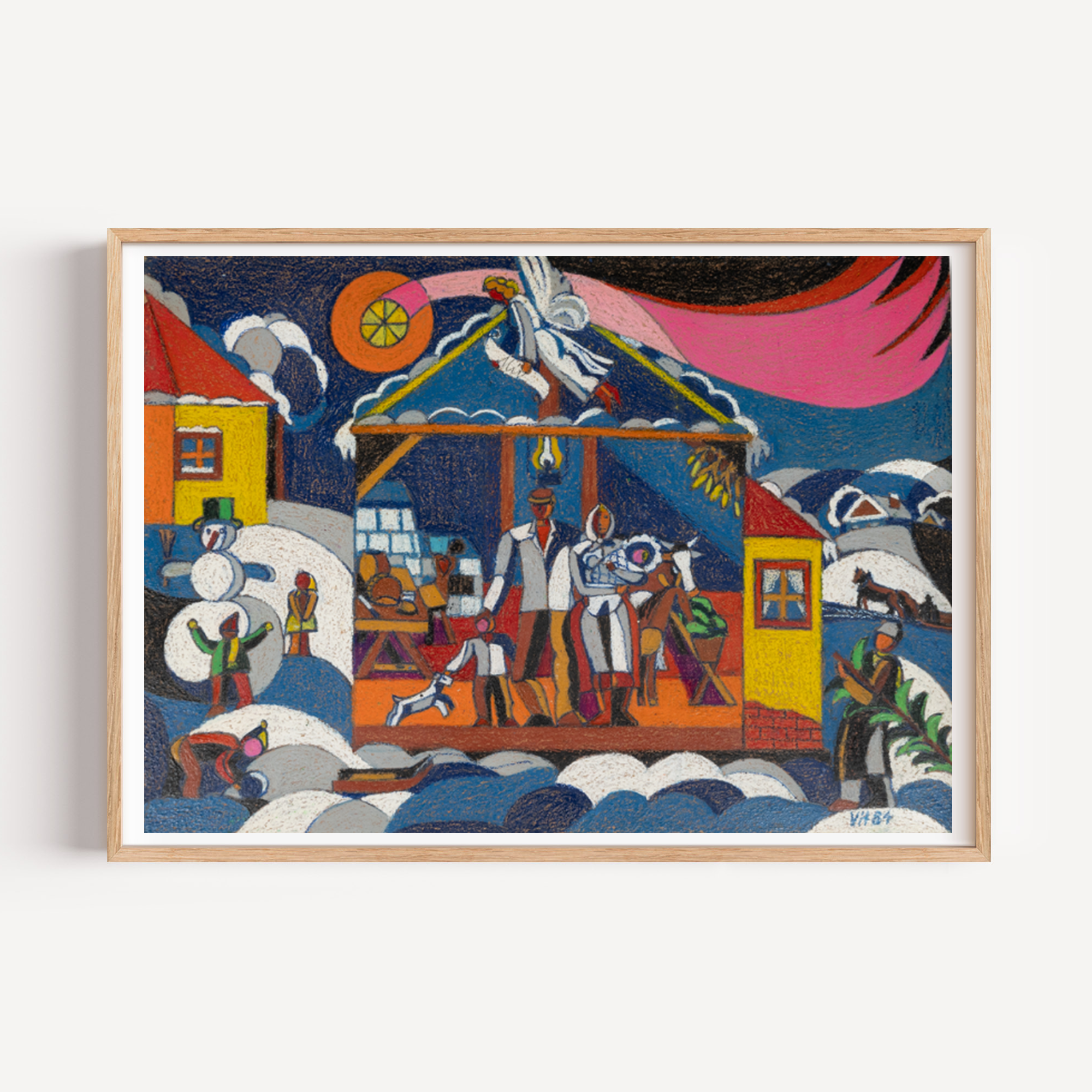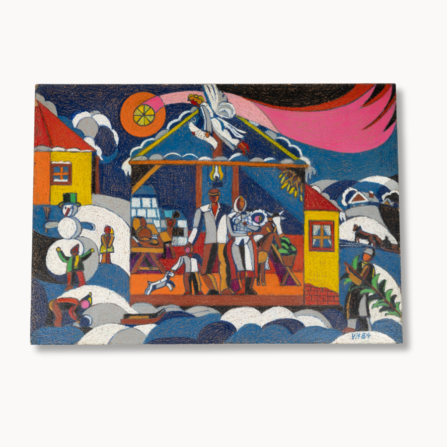 Celebrate togetherness in “A Winter Family” by Vitek, where vibrant colors and playful forms capture the warmth of familial bonds against a snowy backdrop. The lively composition brims with character—each figure animated with joy, each detail a nod to shared winter traditions. Vitek’s signature use of bold geometry and layered hues transforms a simple seasonal moment into a striking, contemporary masterpiece. Perfect for collectors seeking art that radiates both heart and high design.