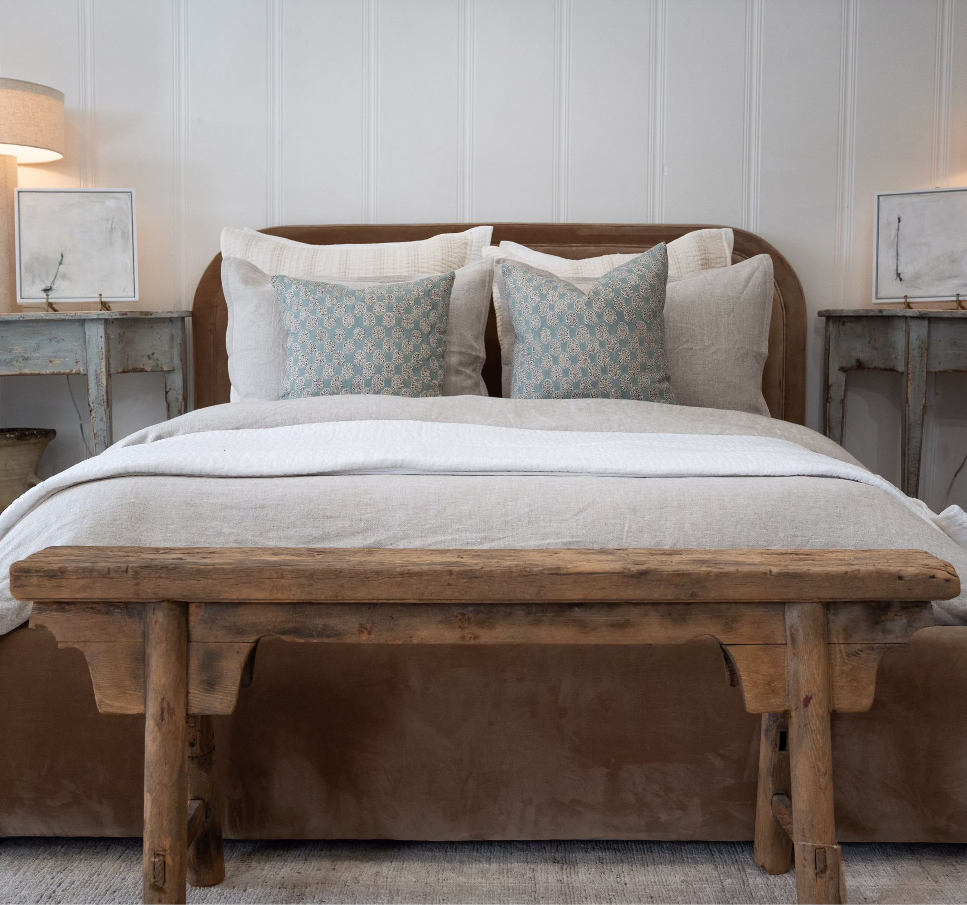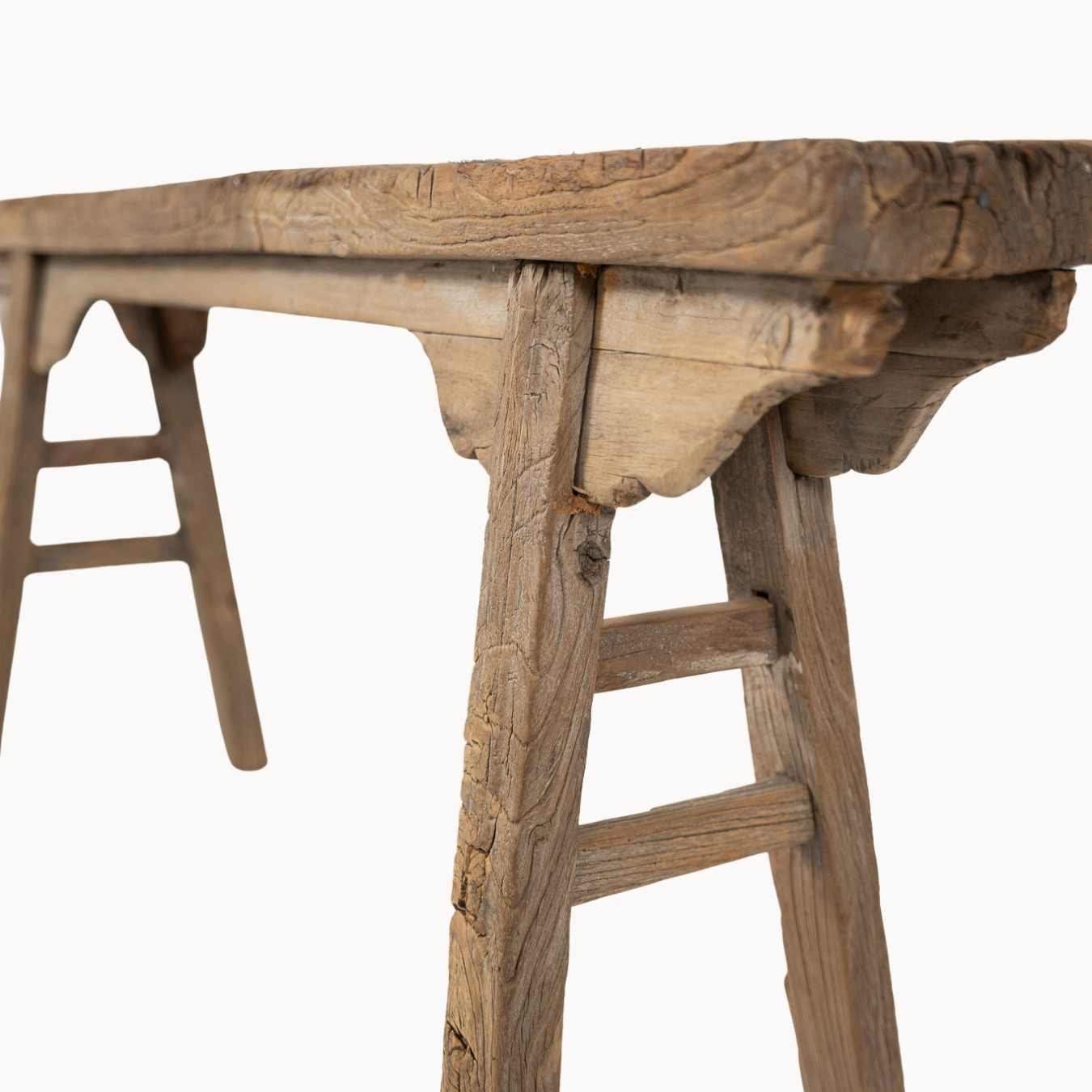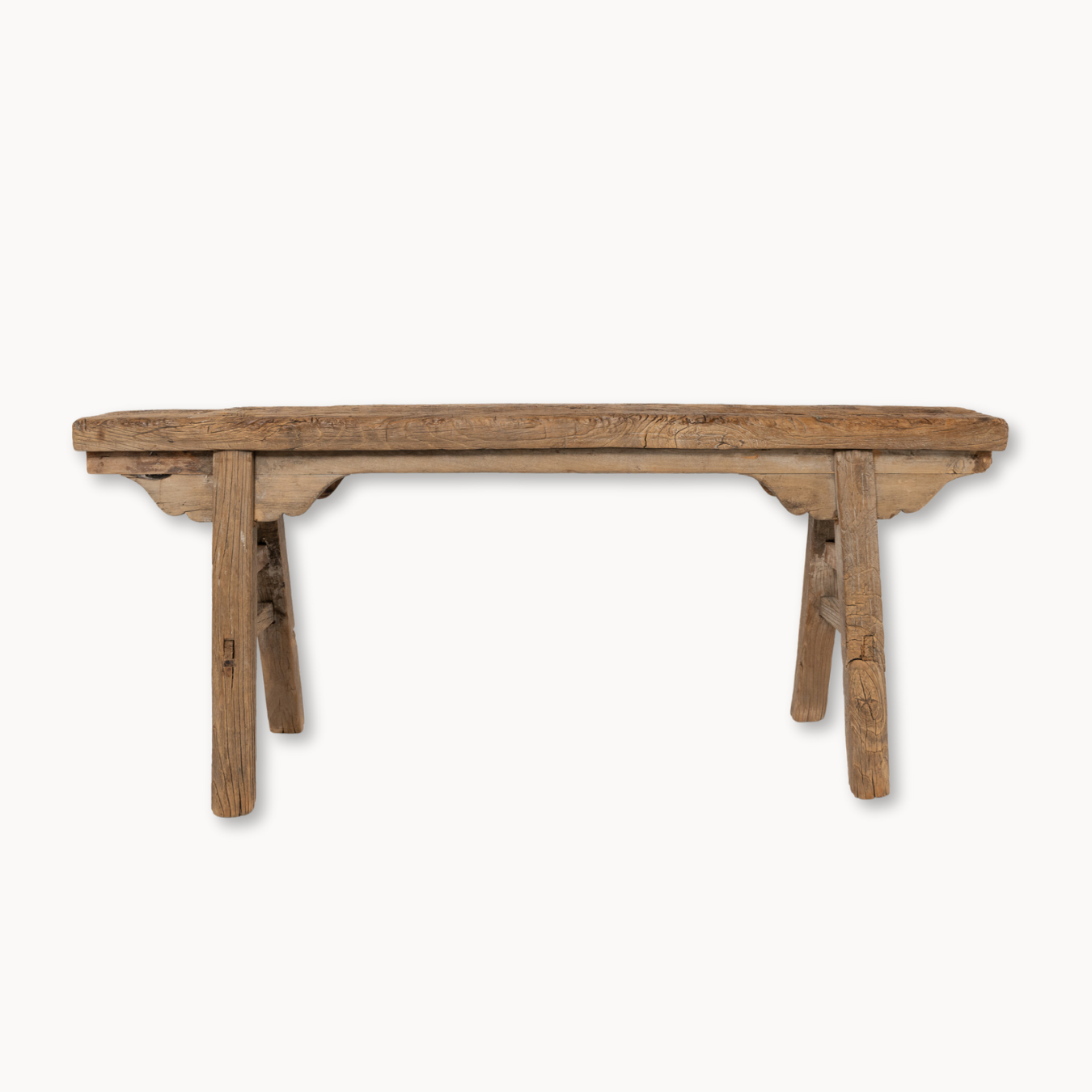 This Decorative Arched Wooden Bench is a one-of-a-kind piece that will add a unique touch to any space. Repurposed from vintage sawhorse benches, each one carries the marks and memories of a life once lived—tool grooves, weathered wood, and authentic patina included. Crafted with care and attention to detail, it is sure to impress with its distinct character and style. Elevate the aesthetic of your home with this beautifully crafted bench that blends history with timeless design.