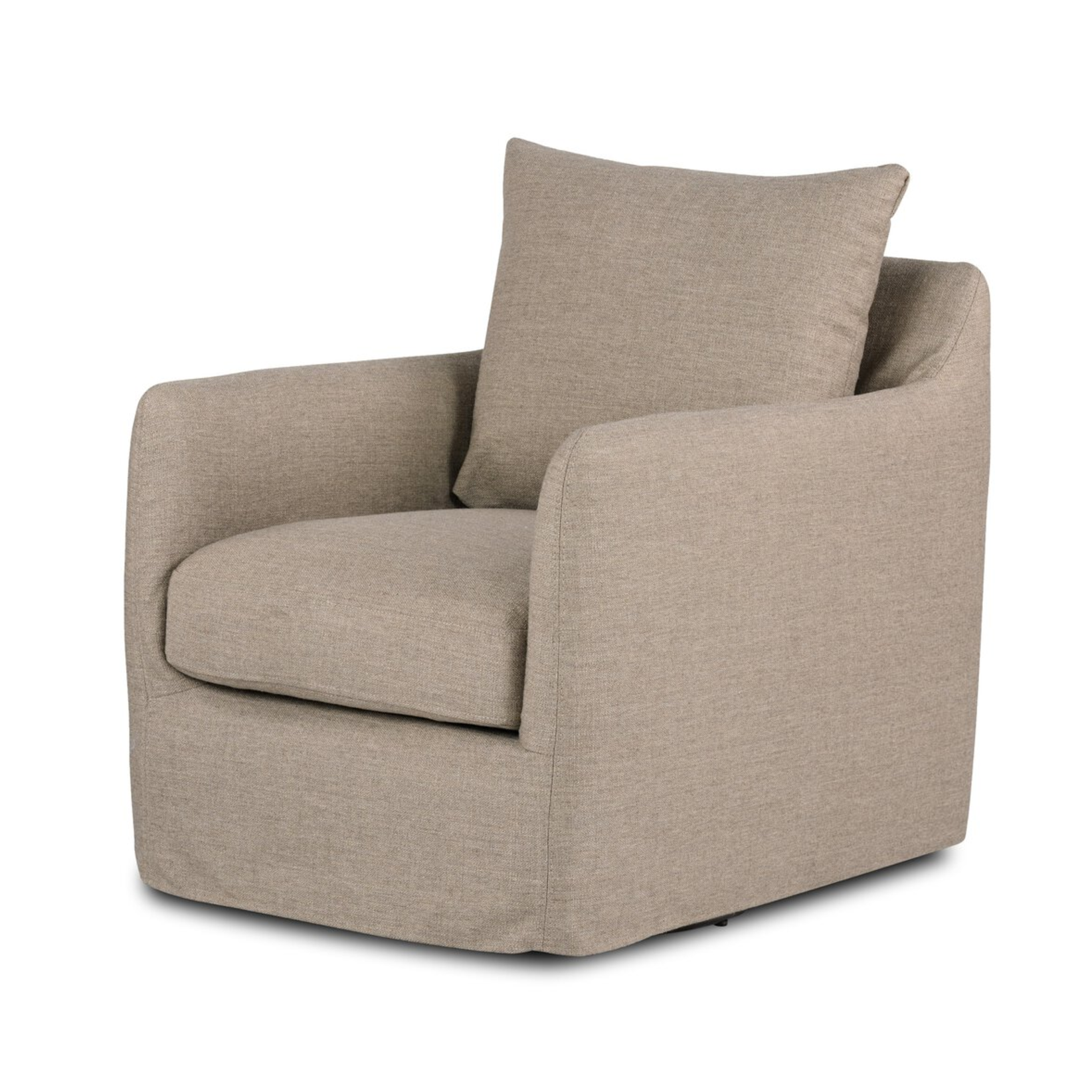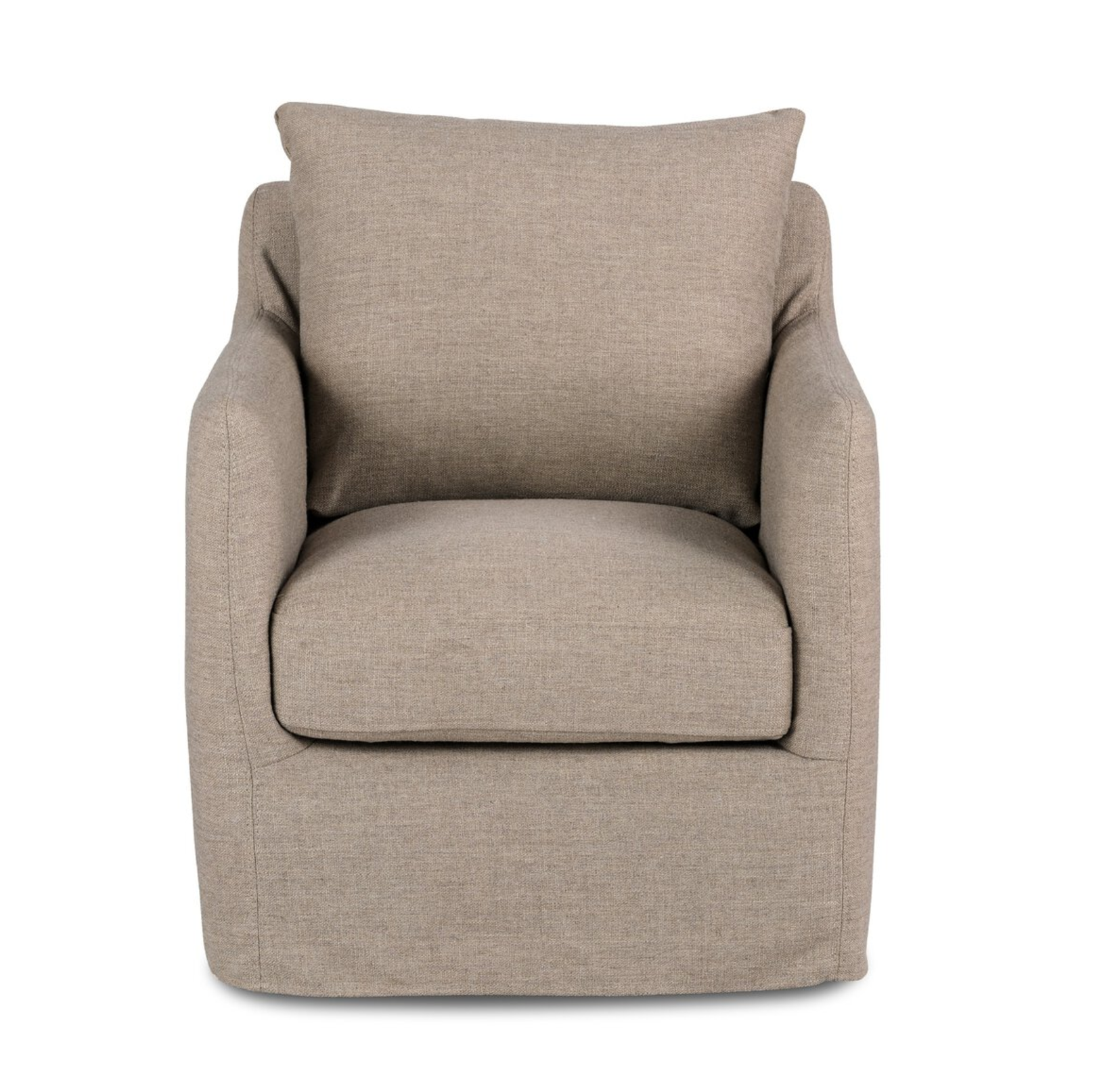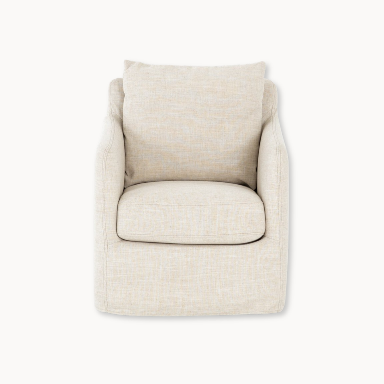 The Banks Swivel Chair is a perfect blend of comfort and contemporary design, ideal for indoor spaces. Its softly rounded silhouette and plush cushioning provide exceptional support, while the swivel base adds functionality and ease of movement. Upholstered in a neutral fabric, this chair seamlessly complements a variety of decor styles, from modern to classic. Perfect for a cozy reading nook or as a stylish accent in your living room, the Banks Swivel Chair brings both elegance and practicality to your home. Its timeless design ensures it will remain a favorite for years to come.