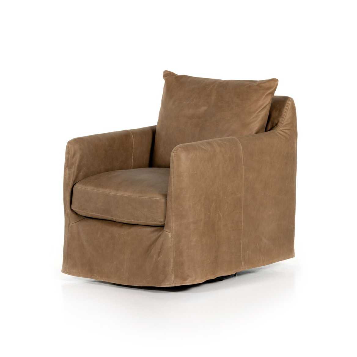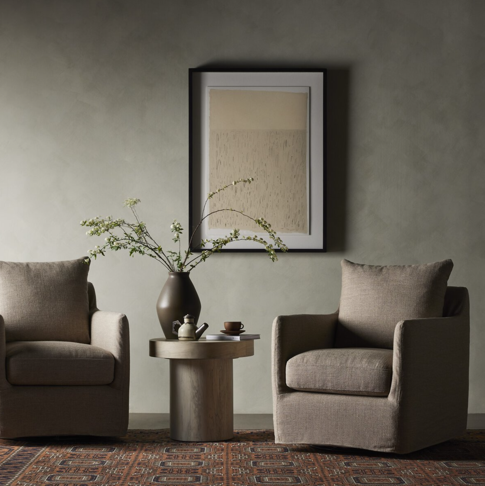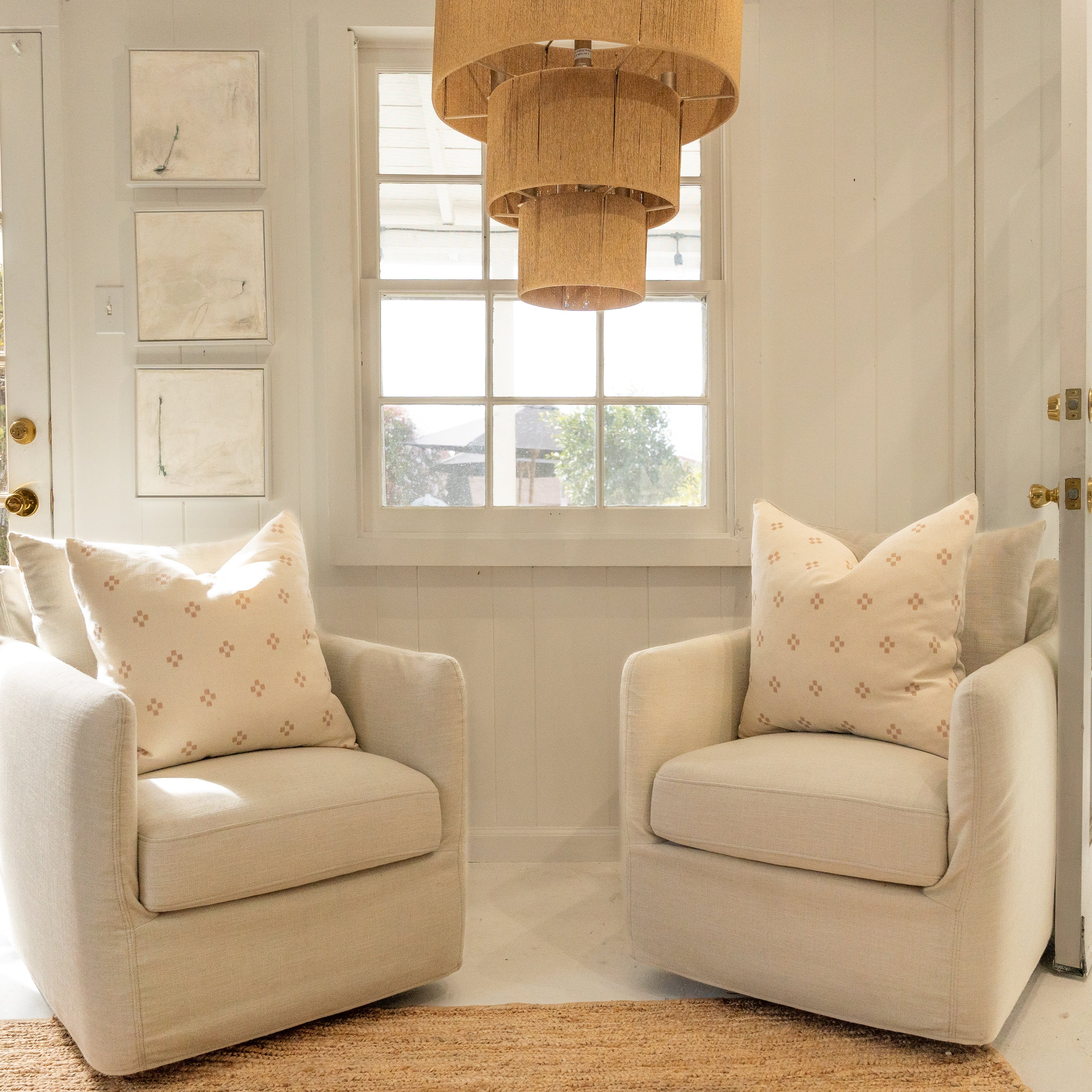 The Banks Swivel Chair is a perfect blend of comfort and contemporary design, ideal for indoor spaces. Its softly rounded silhouette and plush cushioning provide exceptional support, while the swivel base adds functionality and ease of movement. Upholstered in a neutral fabric, this chair seamlessly complements a variety of decor styles, from modern to classic. Perfect for a cozy reading nook or as a stylish accent in your living room, the Banks Swivel Chair brings both elegance and practicality to your home. Its timeless design ensures it will remain a favorite for years to come.