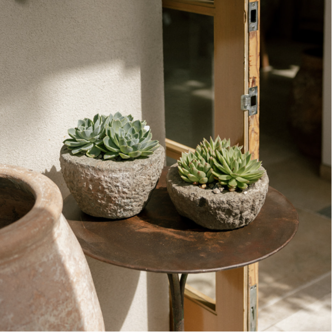 The Carved Stone Bowl Planter combines natural elegance with artisanal craftsmanship to create a truly timeless piece. Handcrafted from durable stone, each planter showcases intricate carved detailing, adding character and charm to any indoor or outdoor space. Perfect for displaying succulents, small plants, or decorative arrangements, its versatile design seamlessly complements styles ranging from rustic to modern. No two planters are exactly alike, as each piece is uniquely crafted, featuring its own individual textures and patterns. Built to last, this planter offers both style and practicality, making it a beautiful addition to your home or garden.