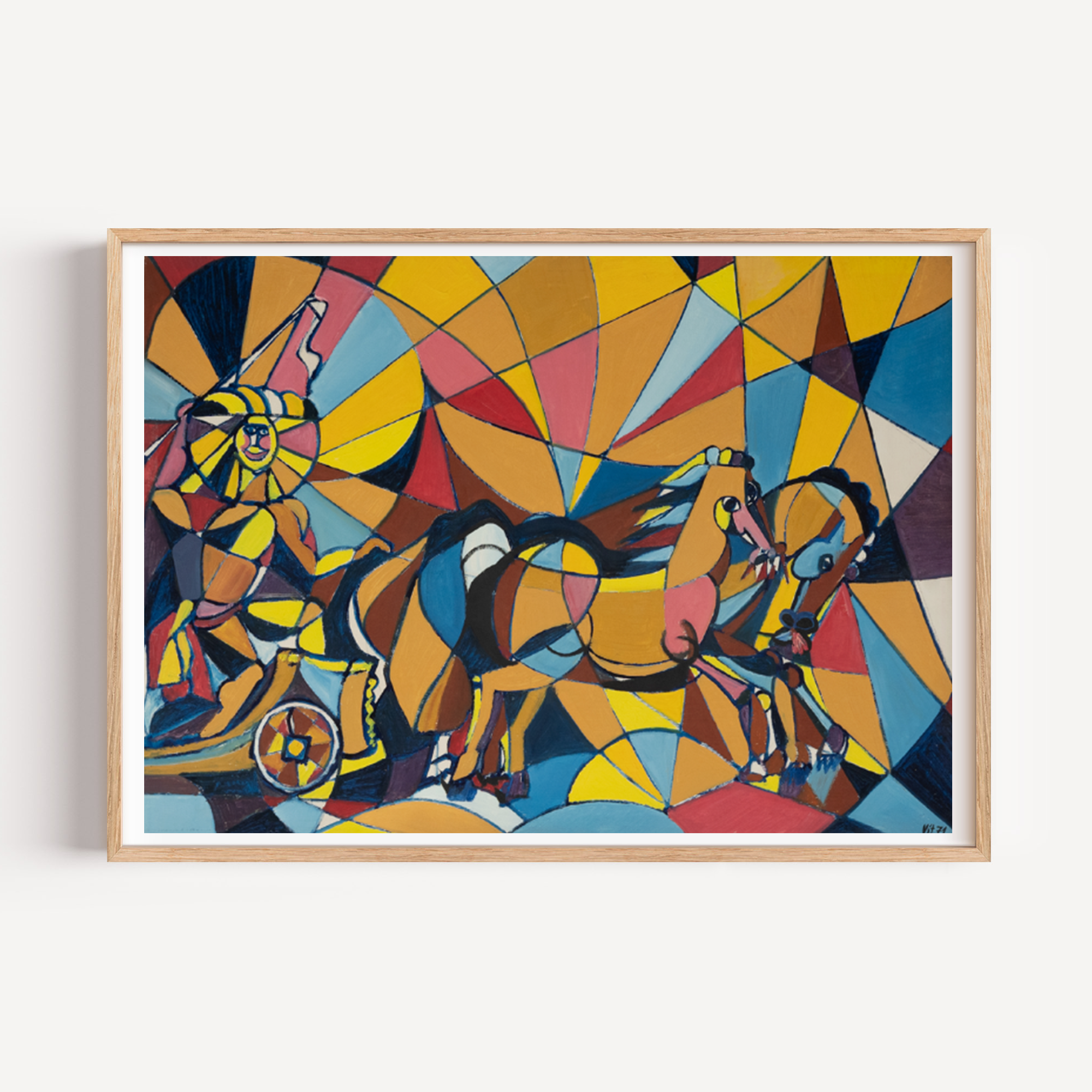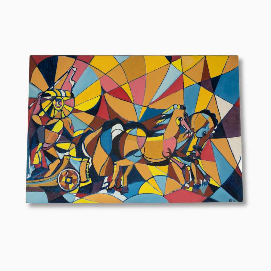 Step into a world of wonder with “Circus Colors” by Vitek, a dazzling celebration of spectacle and motion. Bursting with jewel-toned brilliance, this piece captures the energy of the big top through fragmented forms and kaleidoscopic patterns. Horses and performers emerge from a symphony of angular shapes, evoking both nostalgia and avant-garde artistry. A bold statement for collectors who appreciate vibrant storytelling on canvas.