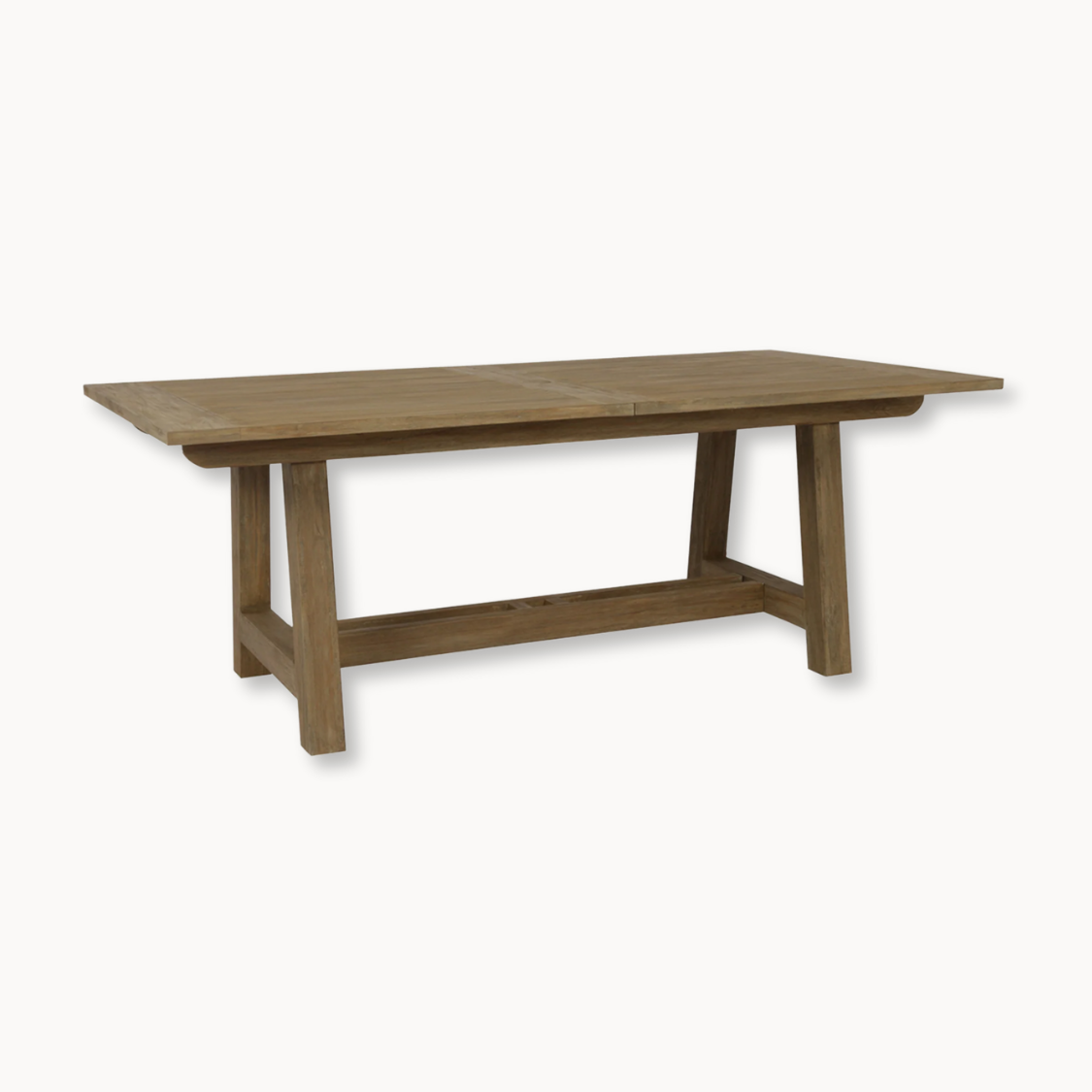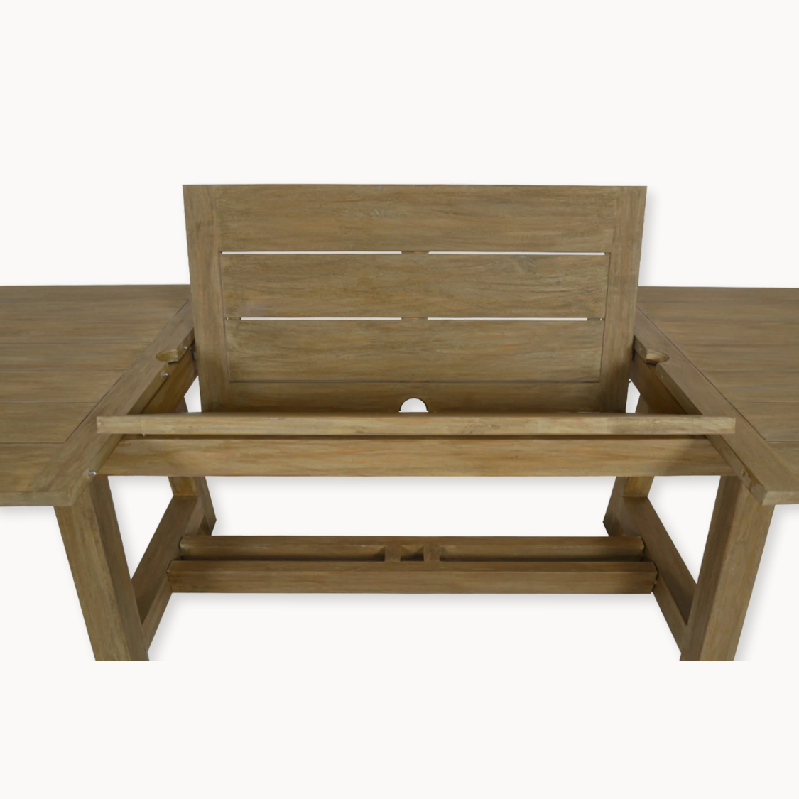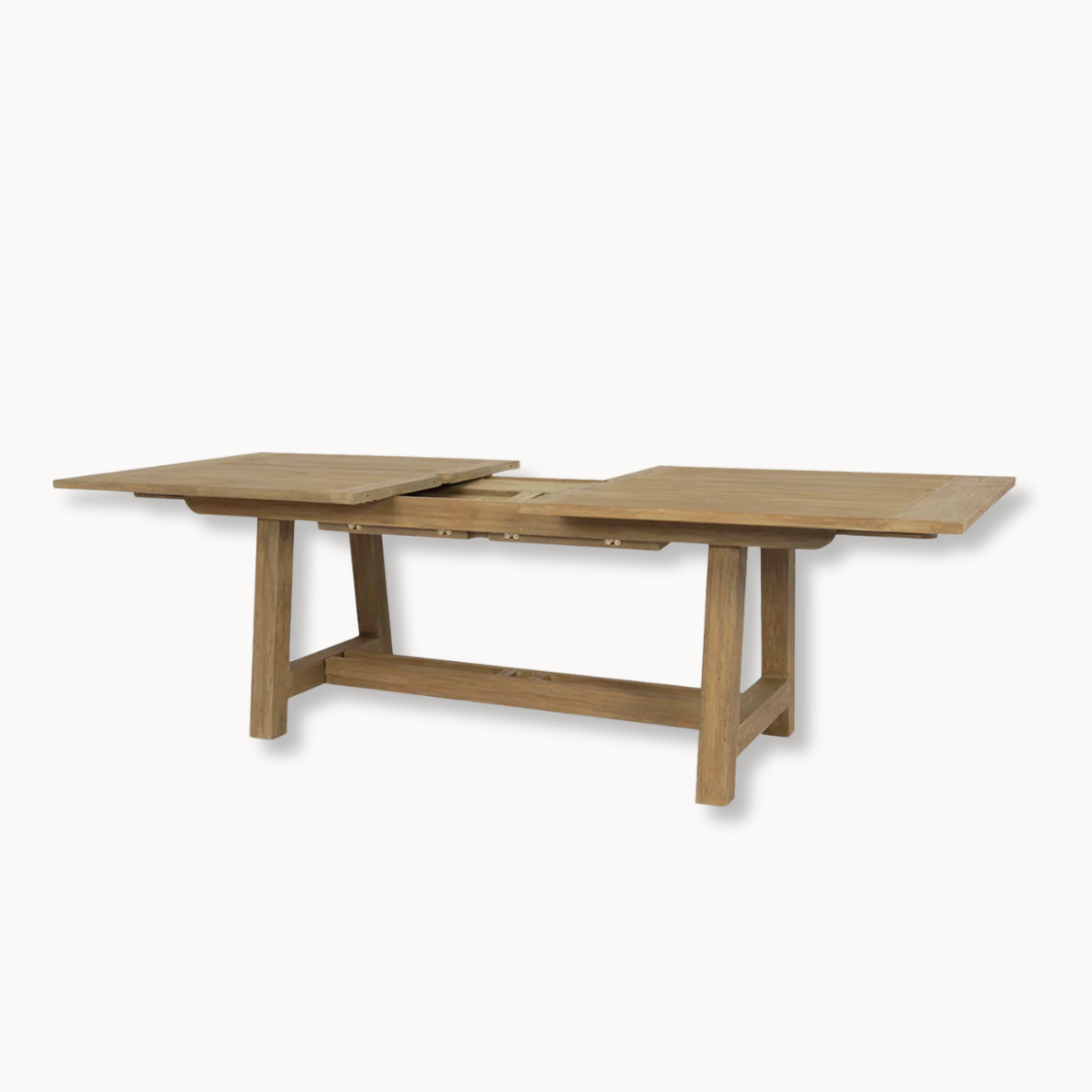 Bring timeless elegance to your outdoor gatherings with the Outdoor Coastal Teak Dining Table. Crafted from premium teak wood, this table features a natural finish that weathers beautifully over time. Its practical leaf extension allows you to effortlessly accommodate more guests, making it perfect for both intimate dinners and large celebrations. Designed for durability and style, it’s a coastal-inspired centerpiece for any patio or garden setting.