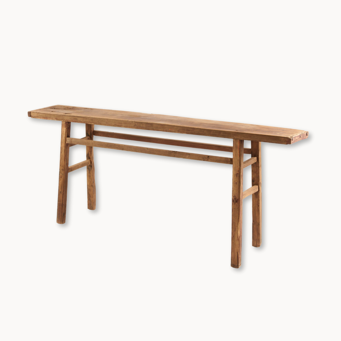 Infuse your space with timeless charm through the Elmwood Console Table. Crafted from beautifully aged elmwood, this table highlights the natural grain and warm tones of the wood. Its sleek, minimalist profile is balanced by sturdy craftsmanship, making it perfect for both indoor and outdoor use. Ideal as a display surface for decorative accents or a functional piece in an entryway, this console table offers both versatility and style.