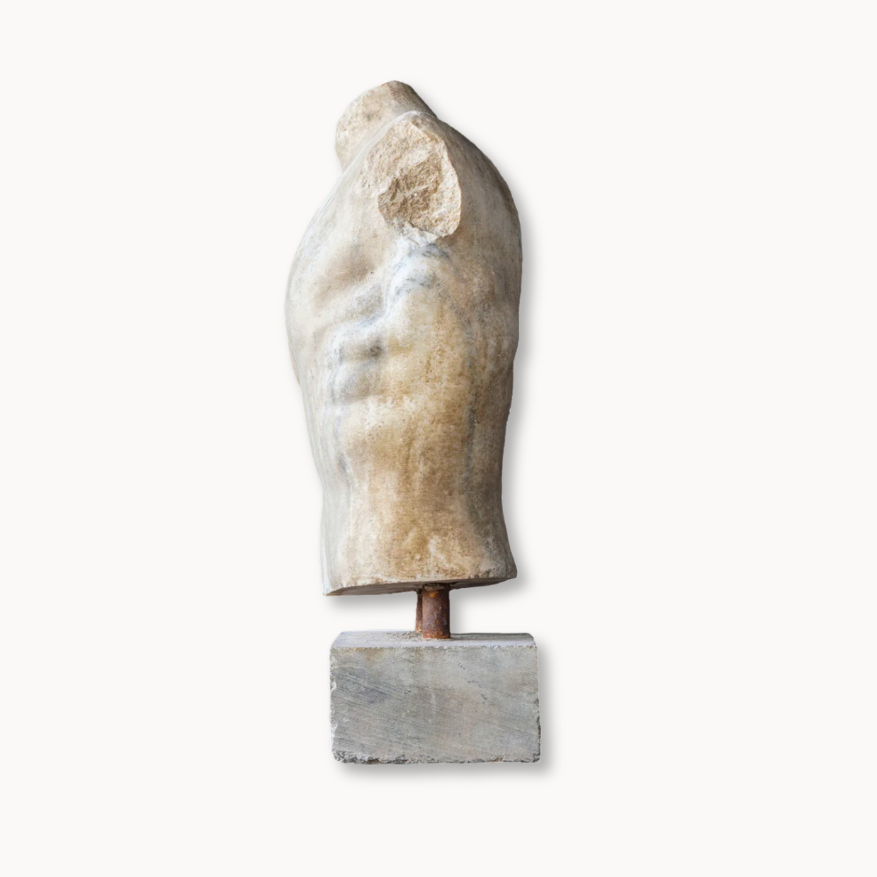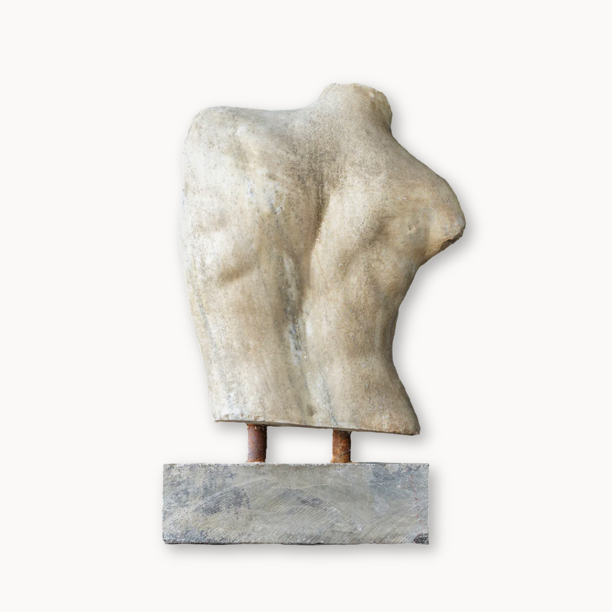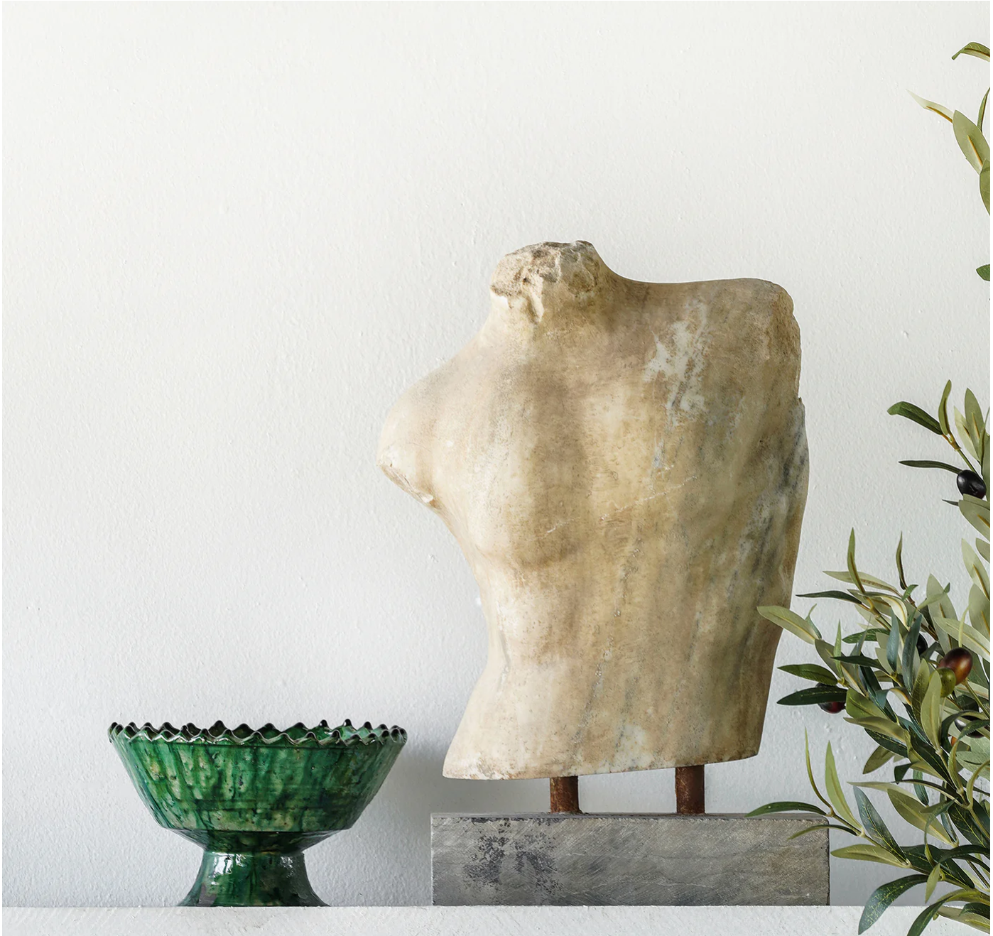 This sculpture is discreetly tantalizing. This accent replicates ancient Roman sculpture remnants and makes you feel as if the museum has come to you. It has an antiqued finish and is gently curved to reflect movement. This accent gives its presence without dominating.