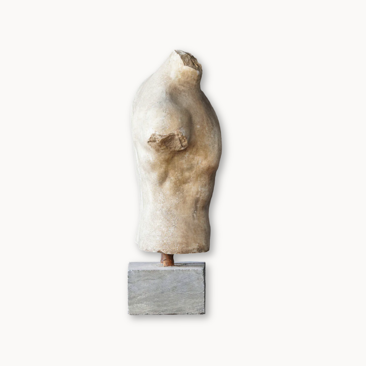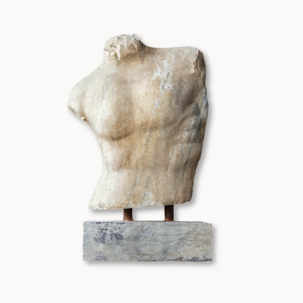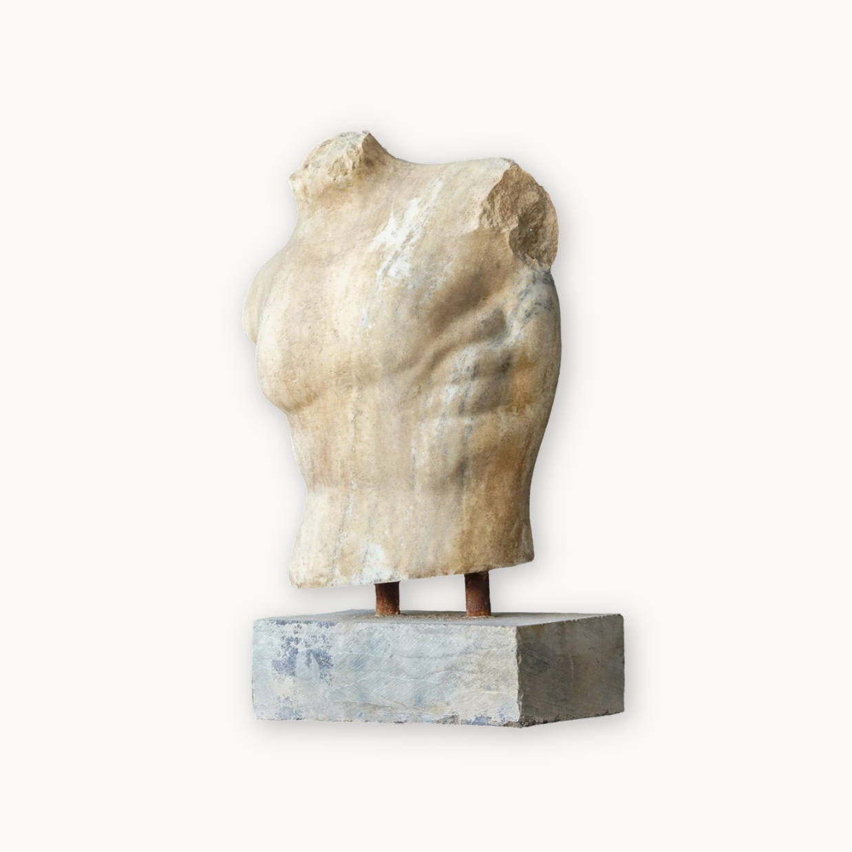 This sculpture is discreetly tantalizing. This accent replicates ancient Roman sculpture remnants and makes you feel as if the museum has come to you. It has an antiqued finish and is gently curved to reflect movement. This accent gives its presence without dominating.