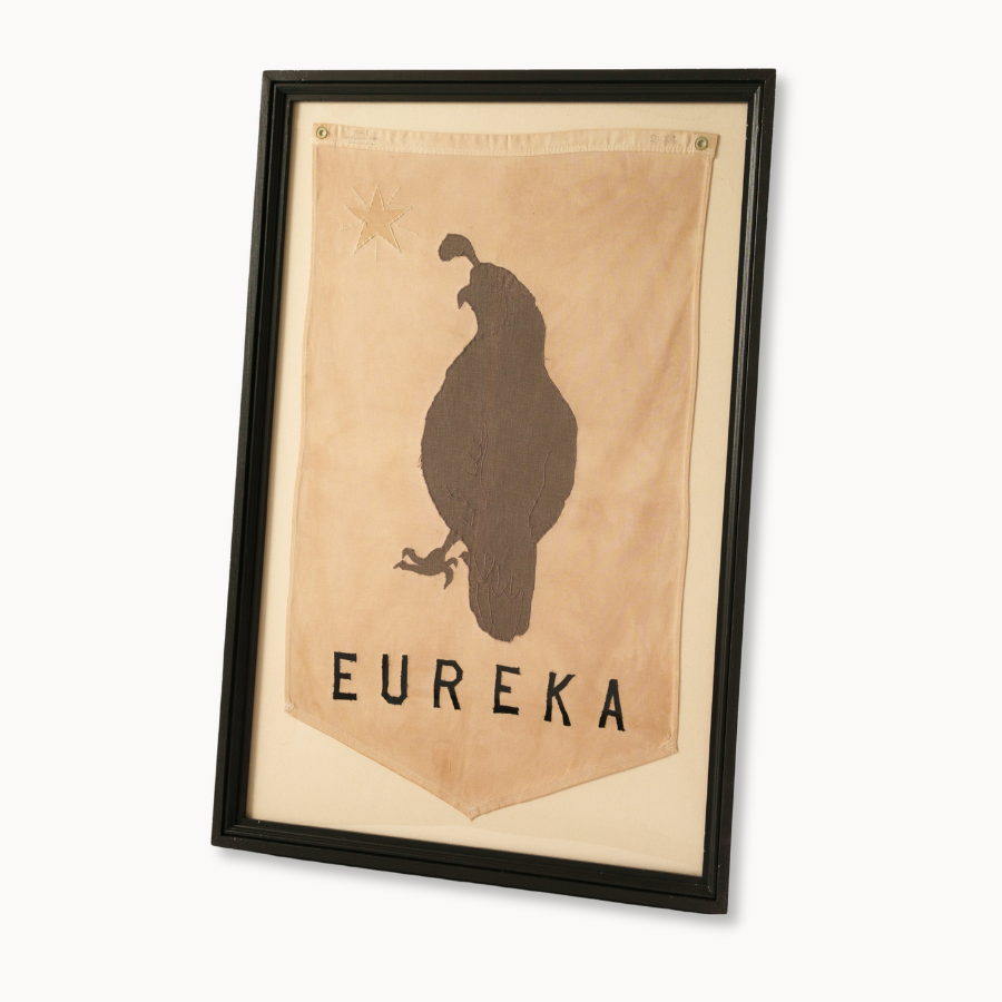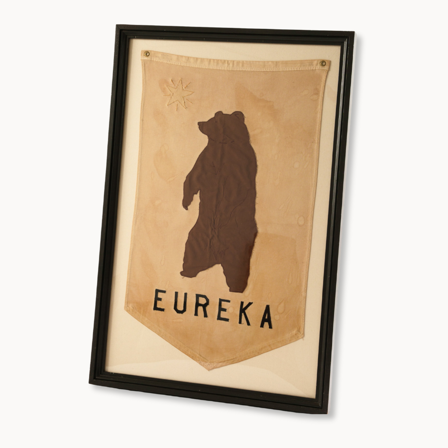 Celebrate California’s rich heritage with this framed vintage Eureka Banner. Featuring a bold bear emblem and the iconic “Eureka” inscription, this piece channels the spirit of the Gold Rush era. The earthy tones and historical design evoke a sense of pride and resilience, making it a perfect addition to any home with a love for vintage Americana. Whether styled in an office, hallway, or library, it’s a conversation piece that honors the Golden State’s pioneering past.