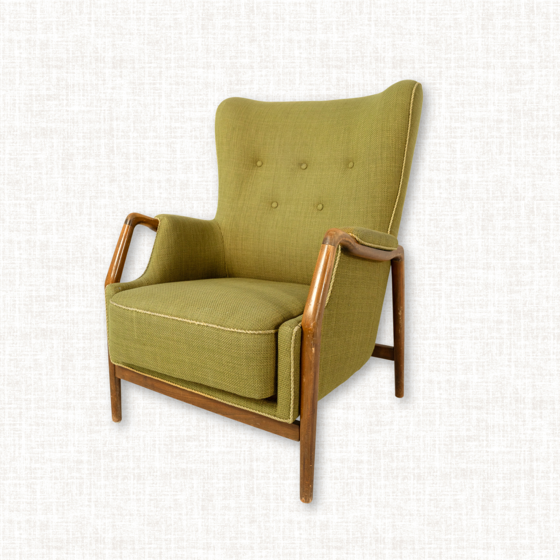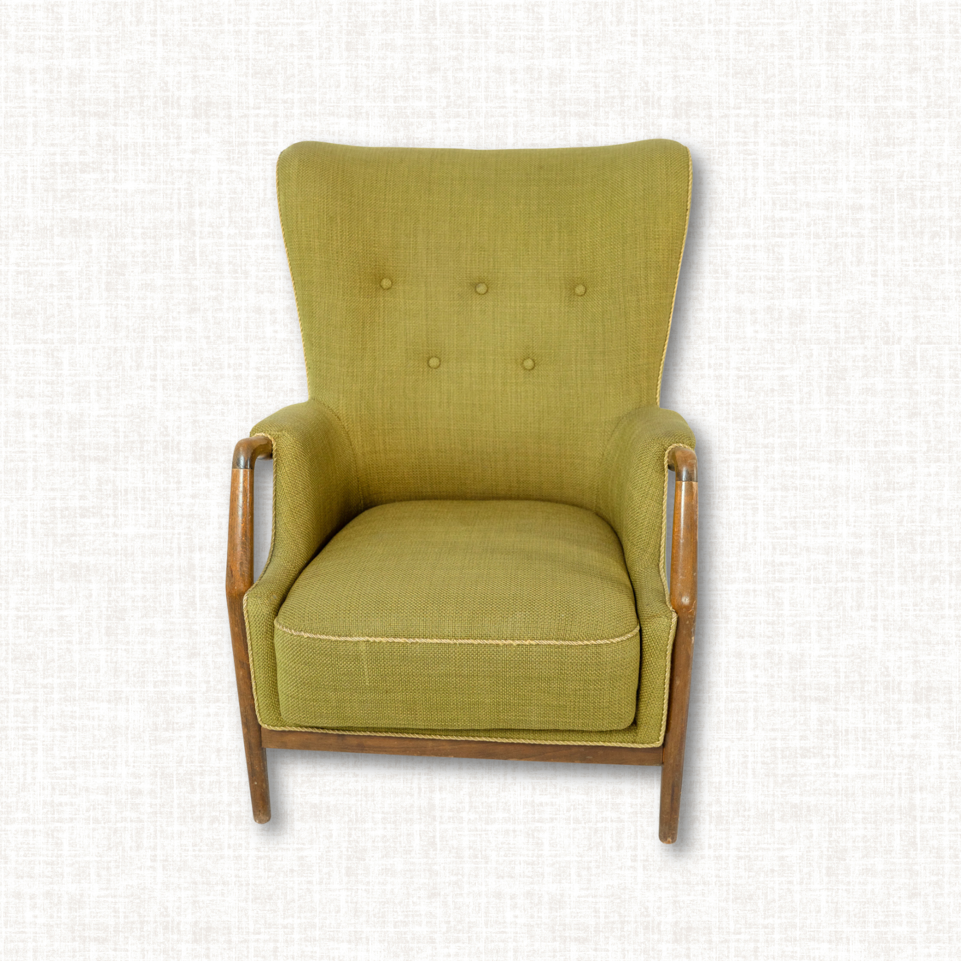 This Green Armchair and Sofa Set embodies classic mid-century charm with a tailored silhouette and warm wooden frame. Upholstered in a vibrant olive green fabric with button-tufted detailing, it offers both comfort and timeless style. The gently curved arms and clean lines reflect understated elegance, making the set versatile for both modern and vintage-inspired interiors. Perfect for creating a cohesive lounge space, this set brings sophistication and inviting warmth to any room.