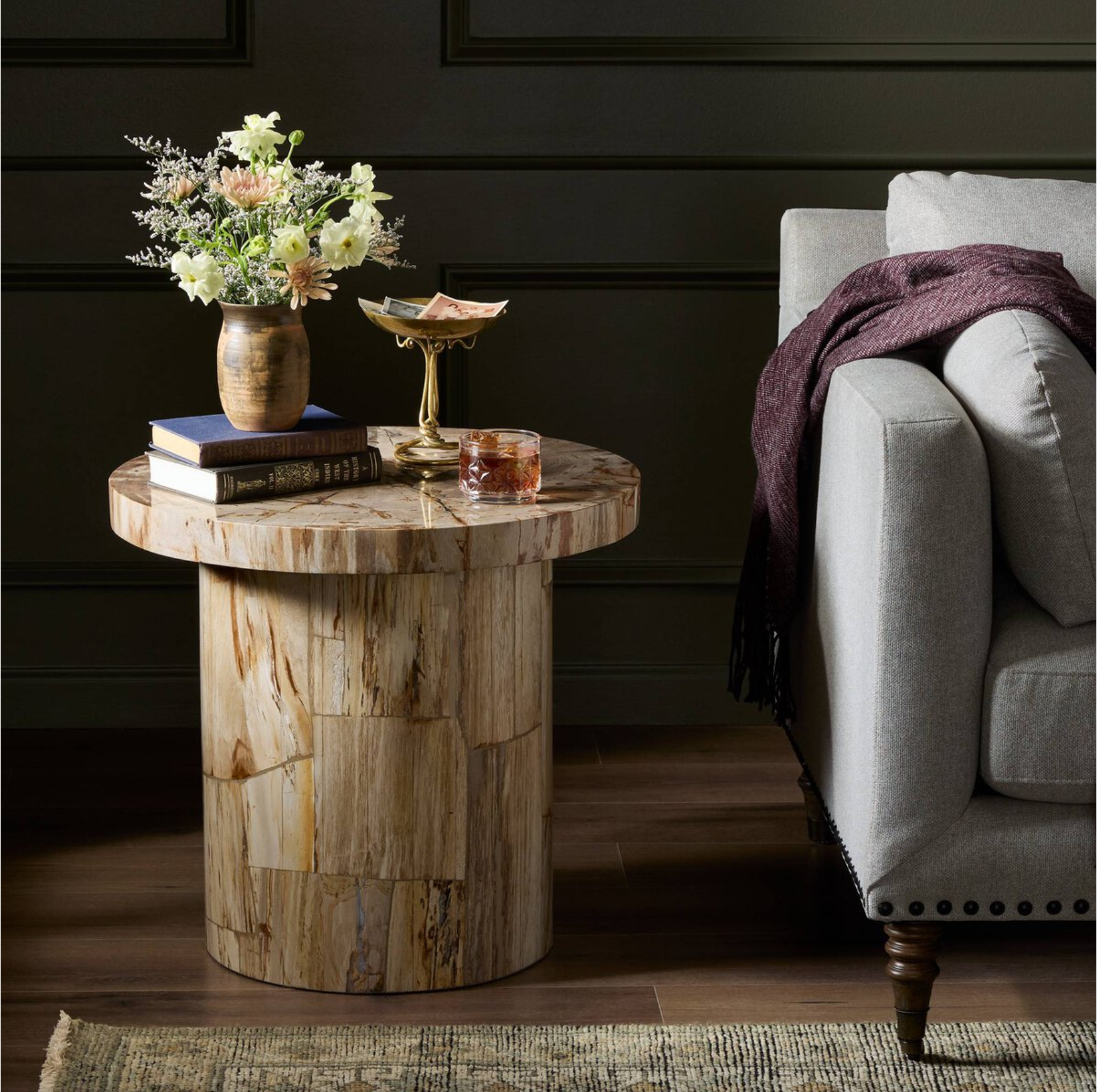 Add a unique touch to your space with the Isla Side Table. Crafted from petrified wood, this perfectly scaled end table is sure to turn heads. Bring an earthy and organic look to your room with this stunning piece.