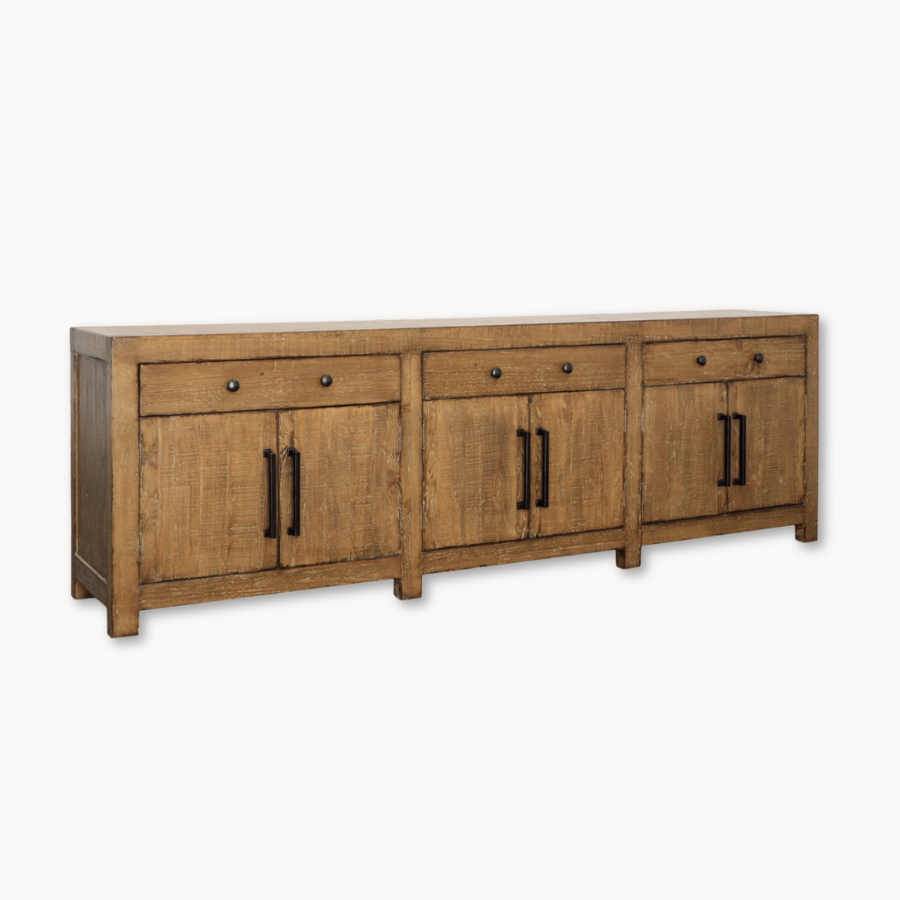 Transform your space with our Langley Sideboard, crafted with sustainable reclaimed pine wood for a unique and eco-friendly addition. The beautiful antique medium brown finish adds warmth and character, making it the perfect storage solution for any room. Elevate your home with this timeless and versatile piece.