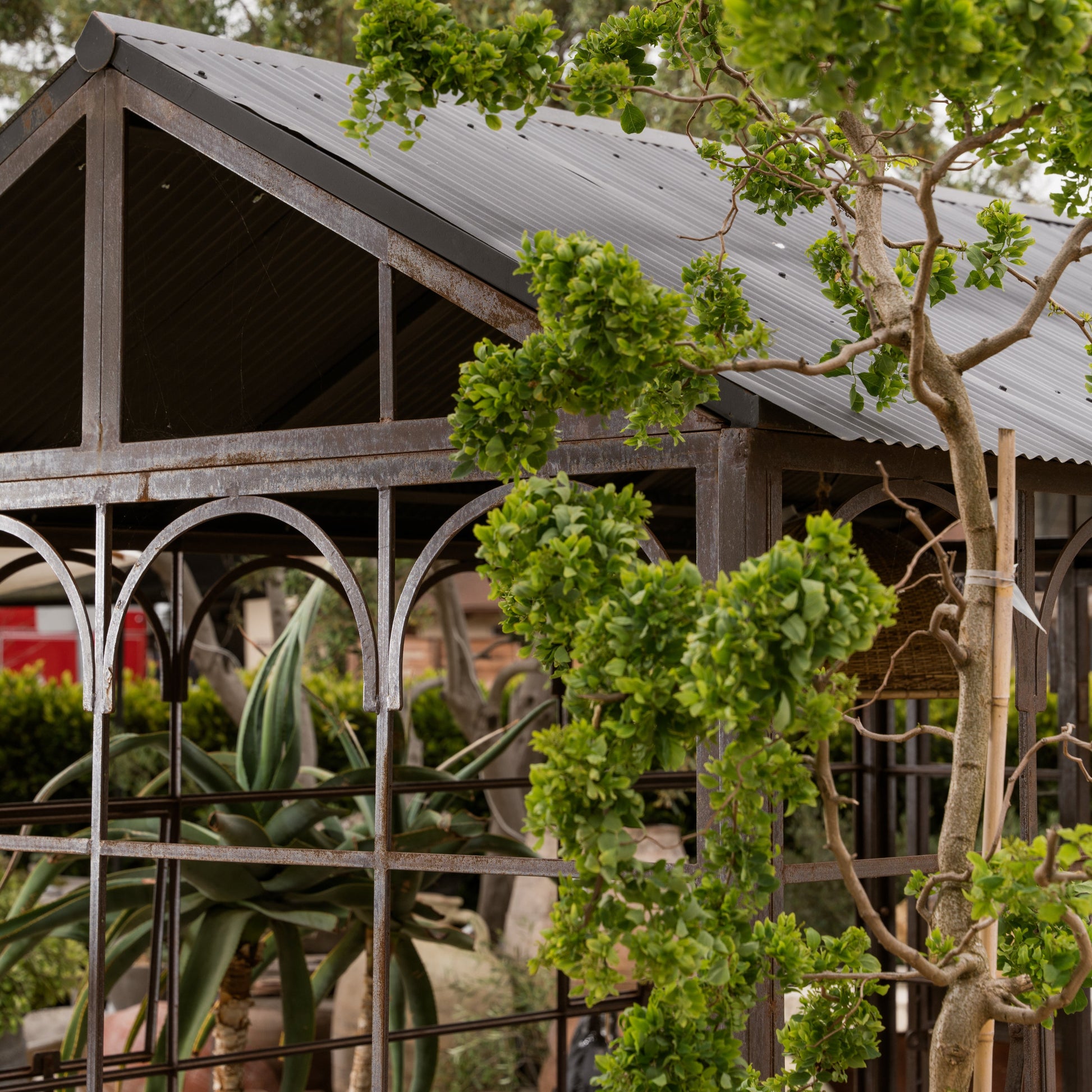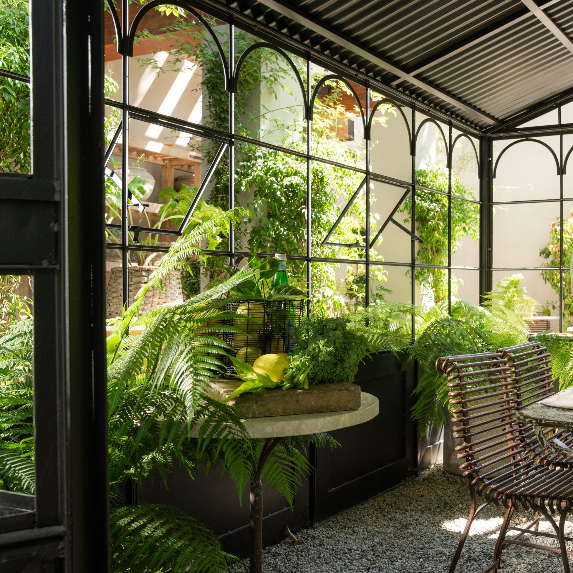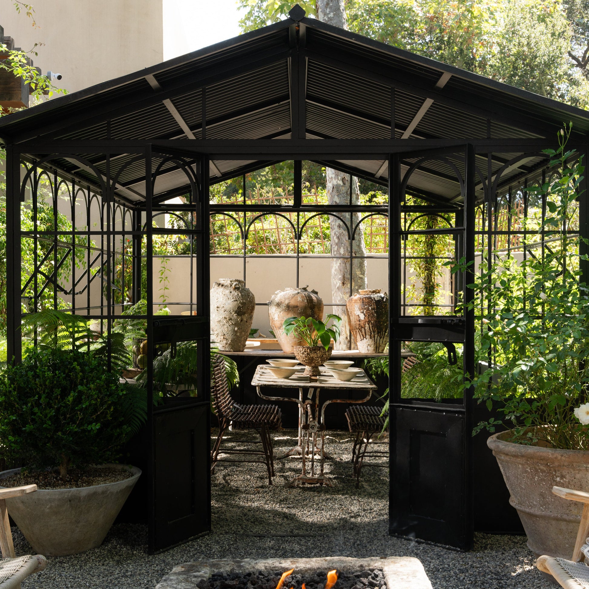 Designed with a sturdy metal frame and intricate arched details, this structure offers a refined aesthetic while providing a versatile environment for your plants to thrive. The durable construction ensures long-lasting resilience against the elements, making it an ideal year-round addition to your garden. Whether used as a greenhouse, an outdoor dining pavilion, or a cozy garden retreat, this piece adds timeless charm to any landscape. Transform your backyard into a serene oasis with this architectural centerpiece.