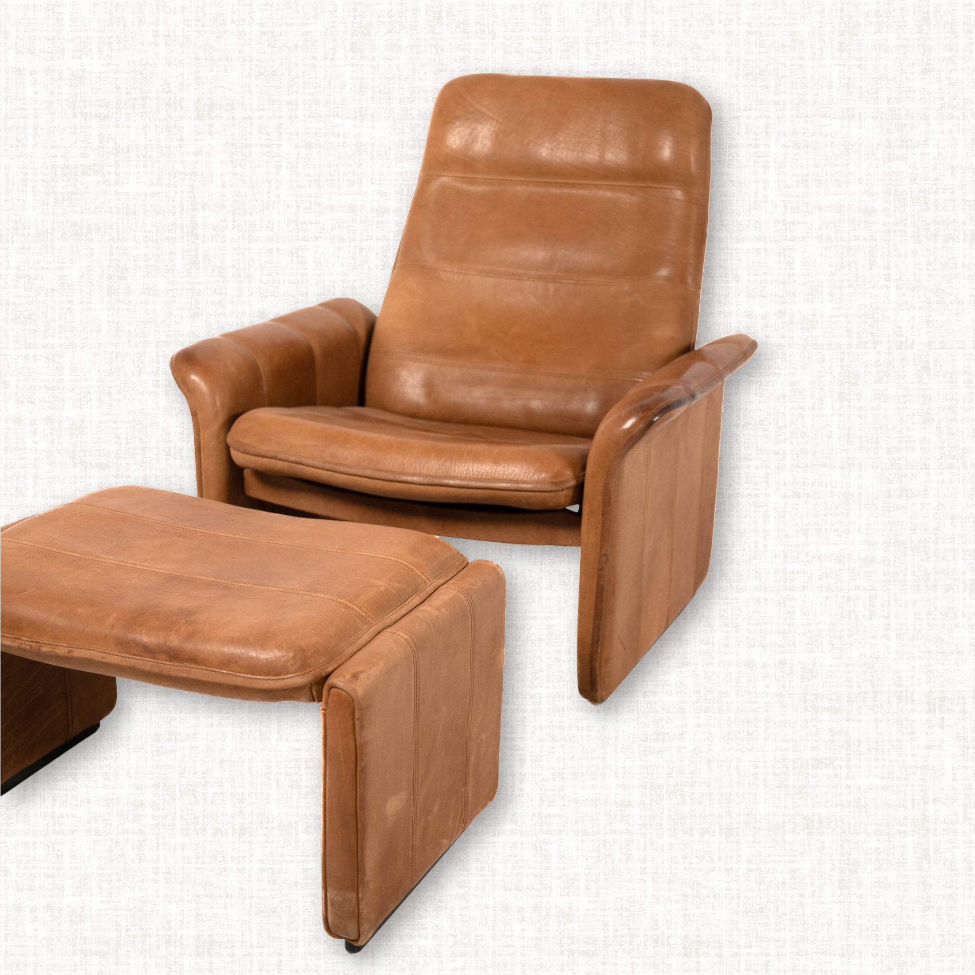 Experience the ultimate in comfort and style with our Leather Mid Century Recliner and Ottoman. Featuring a vintage design, this set adds a touch of sophistication to any living space. Relax in luxury and elevate your home decor with this must-have piece.
