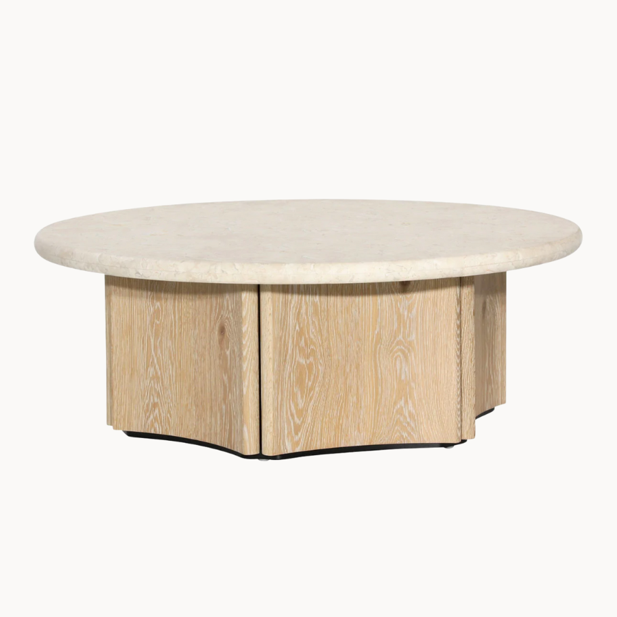 The Oja Coffee Table in Natural is a refined statement piece that combines organic warmth with sculptural design. Its smooth, rounded stone top rests on a beautifully grained wooden base with subtle curves, creating a harmonious balance of texture and form. The natural finish highlights the material’s raw beauty while maintaining a sophisticated, minimalist aesthetic. Perfect for grounding a living room with understated elegance and timeless appeal.