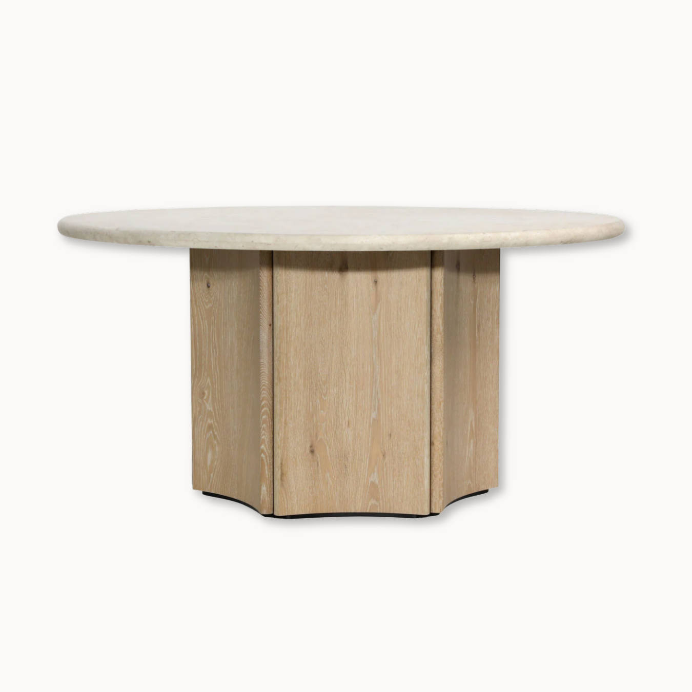 The Oja Round Dining Table in Natural brings understated elegance and timeless design to your dining space. Its smooth, rounded stone top rests atop a beautifully crafted wood base with gentle curves and natural graining. Perfect for both casual and formal gatherings, it creates a warm, inviting centerpiece for family meals and entertaining guests. A seamless blend of organic texture and refined craftsmanship, this table complements a variety of interior styles.
