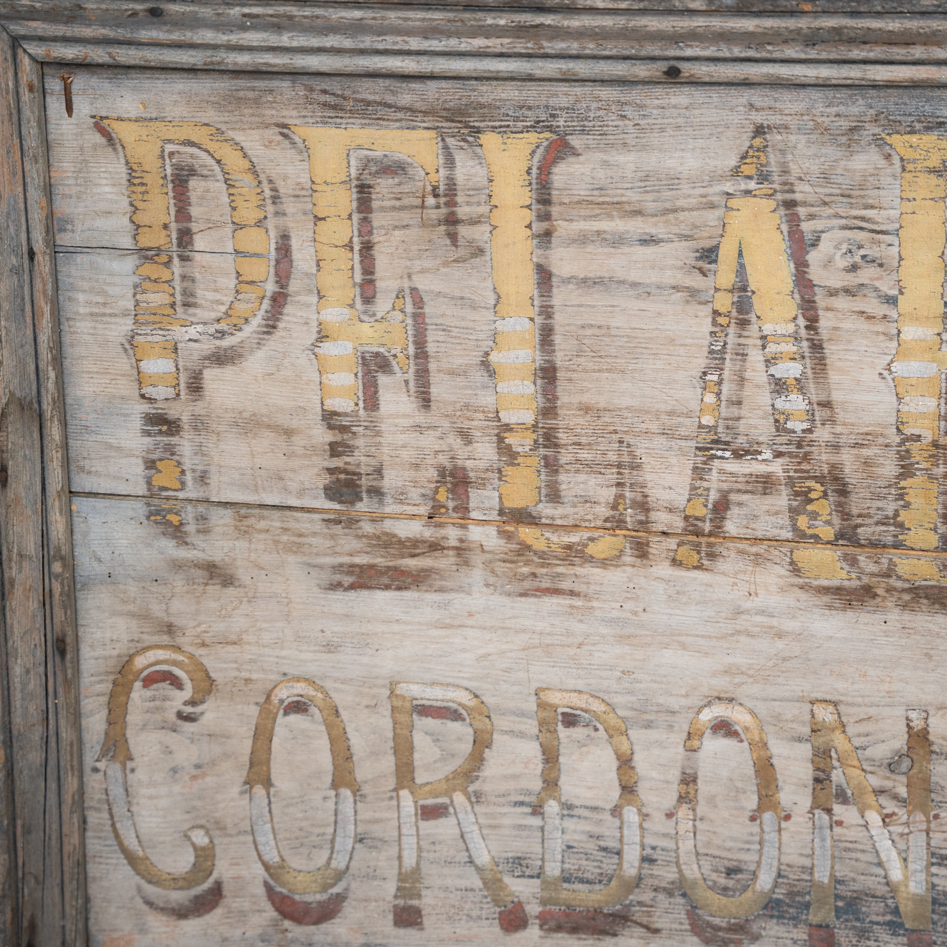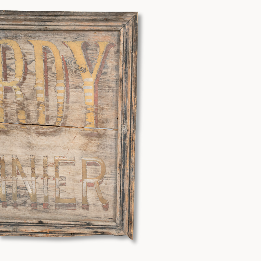 Discover the unique charm of the historic Pelardy Mercantile Sign, an evocative piece of décor that tells a story of commerce and craftsmanship from a bygone era. This vintage sign, with its weathered appearance and classic typography, captures the essence of early 20th-century marketplaces, where signs like this one were a common sight. The rustic wood and faded paint suggest a history filled with bustling trade and community engagement. Perfect for adding a touch of nostalgia and authenticity to any setting, this sign is not just a decoration but a piece of history that brings the spirit of the past into your space. Whether displayed in a home, office, or commercial setting, the Pelardy Mercantile Sign serves as a captivating focal point, inviting conversation and admiration.