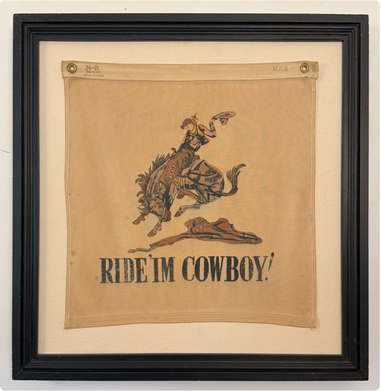 Check out our Ride'IM Cowboy flag art, a timeless universal piece! Product comes framed as pictured. Get yours now!