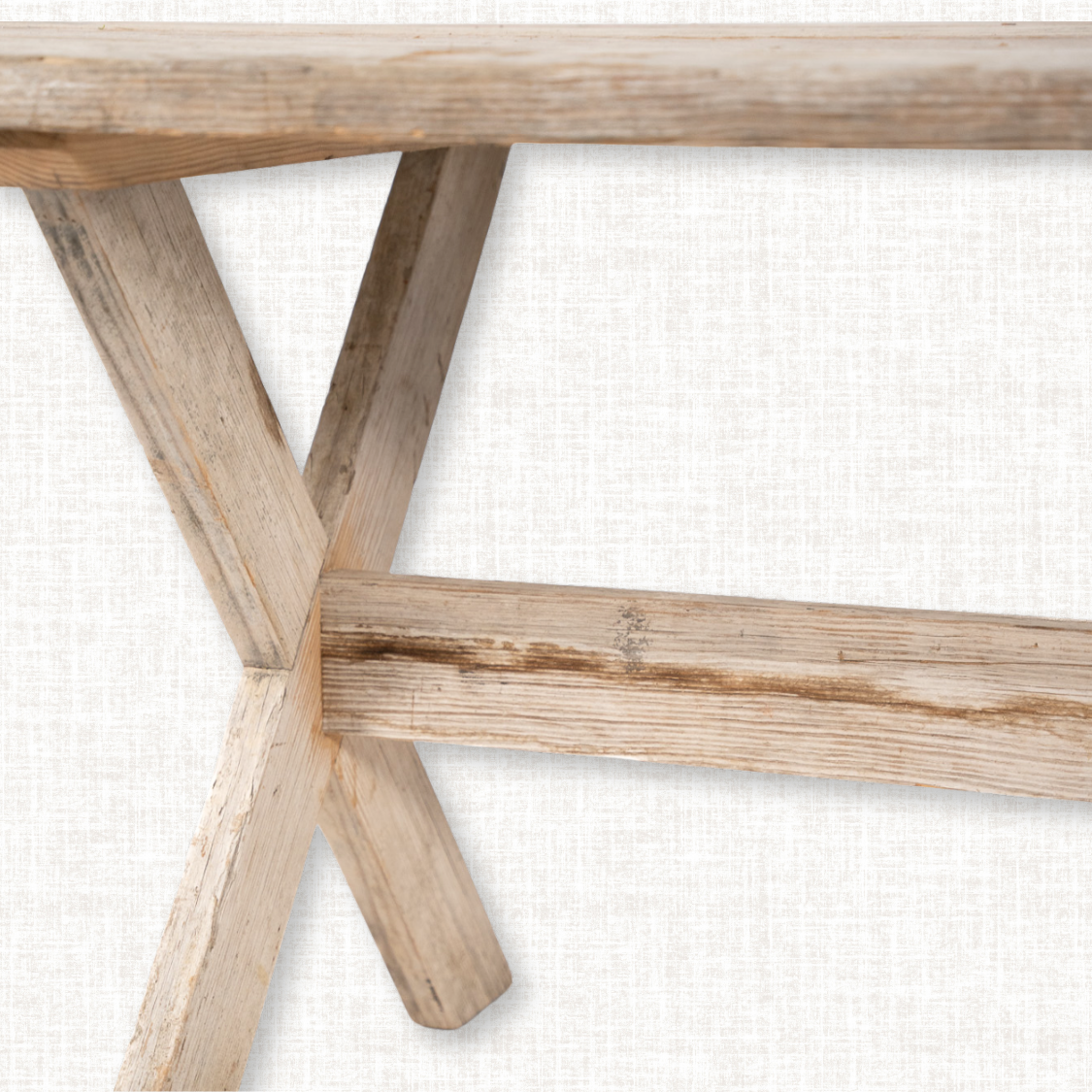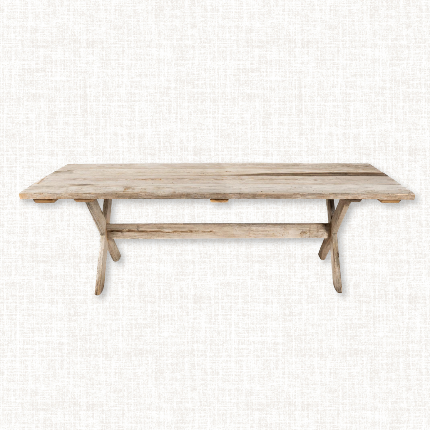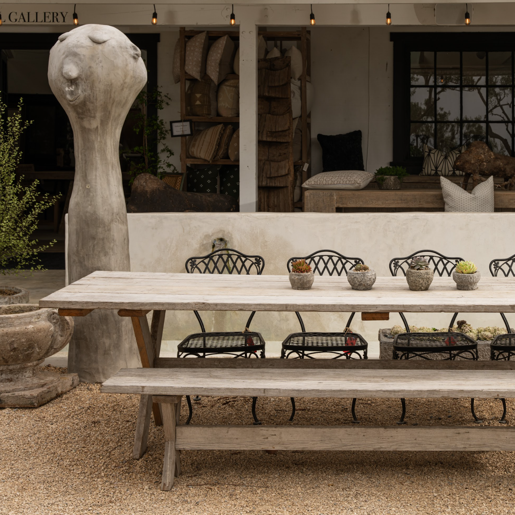 Transform your outdoor space with the commanding elegance of this custom scaffolding dining table. Designed to withstand the elements, its expansive reclaimed wood surface offers both durability and natural beauty. The sturdy frame, inspired by industrial craftsmanship, provides a bold foundation for al fresco dining. Perfect for hosting large gatherings or intimate meals, the table’s rustic charm harmonizes with lush garden settings or contemporary patios.