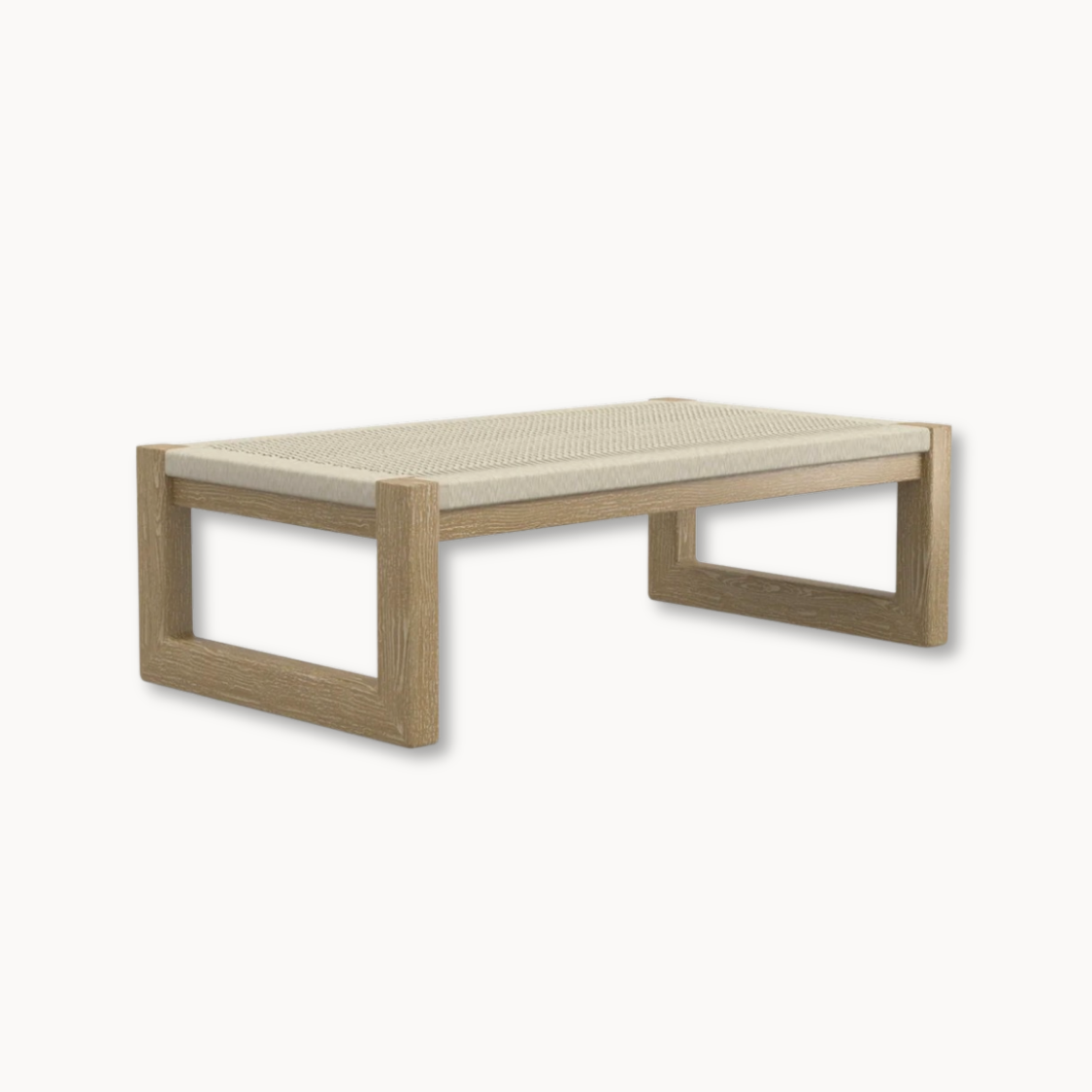 Part of our Sedona Collection: crafted for outdoor living with teak wood and woven wicker in serene, neutral tones - the Sedona Coffee Table in Natural embodies relaxed sophistication. Its clean lines and open frame create an airy, contemporary feel while offering durable functionality for outdoor settings. The woven top adds texture and artisanal character, seamlessly blending with modern and coastal-inspired spaces. A refined centerpiece for casual gatherings, it elevates outdoor lounging with understated elegance.