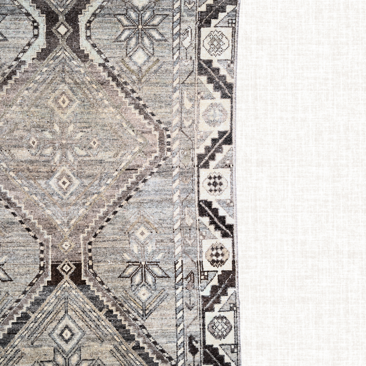 A masterful blend of earthy neutrals and cool slate tones gives the Silver Horizon Geometric Runner its quietly commanding presence. The elongated diamond medallions are framed with intricate borders, creating a rhythmic pattern that draws the eye down its length. Muted grays, taupes, and soft blues interplay to produce a vintage patina that feels both timeless and current. Ideal for hallways or entryways, this runner’s restrained palette and geometric symmetry bring understated elegance to any space. Handwoven with care, it’s a piece that grounds and refines without overpowering.