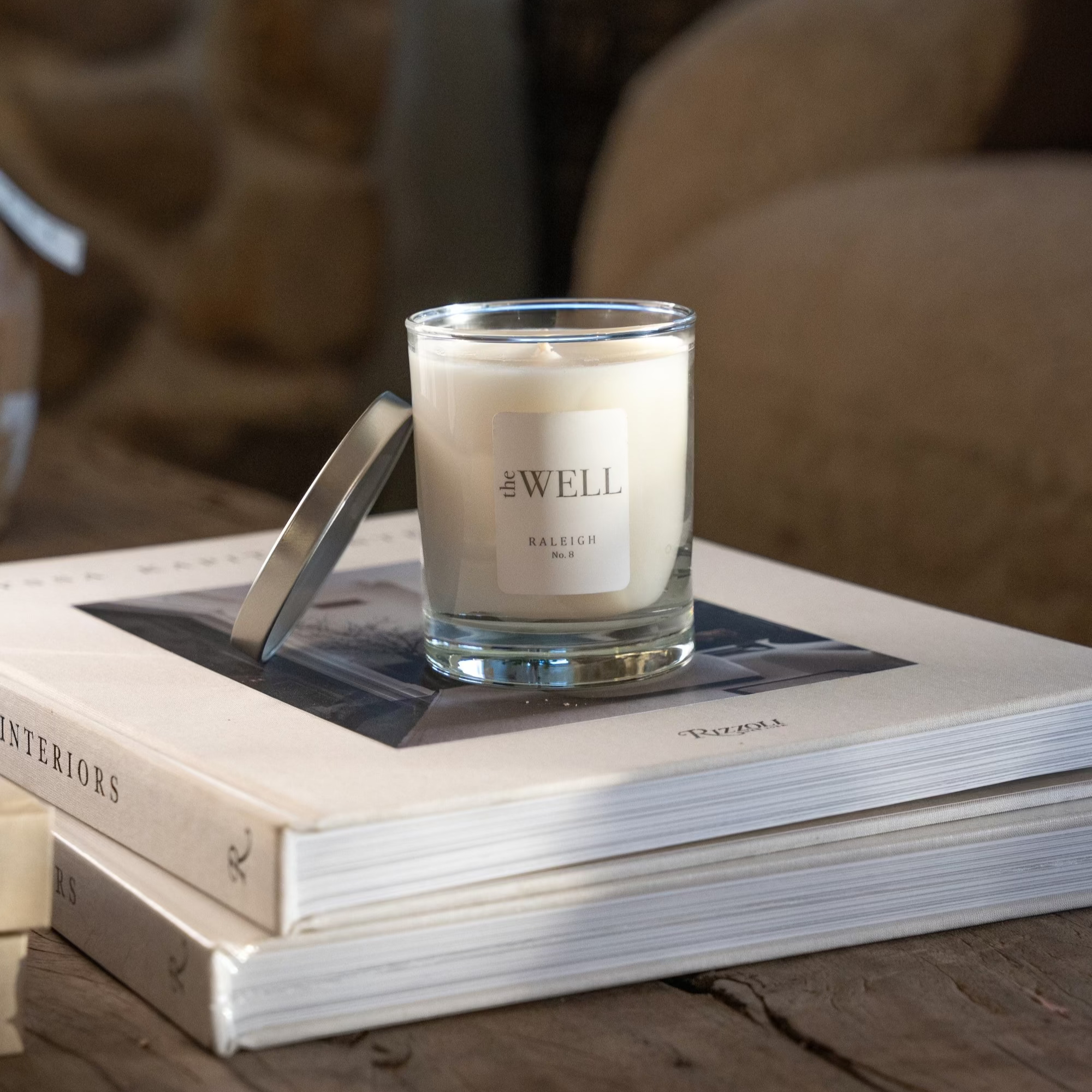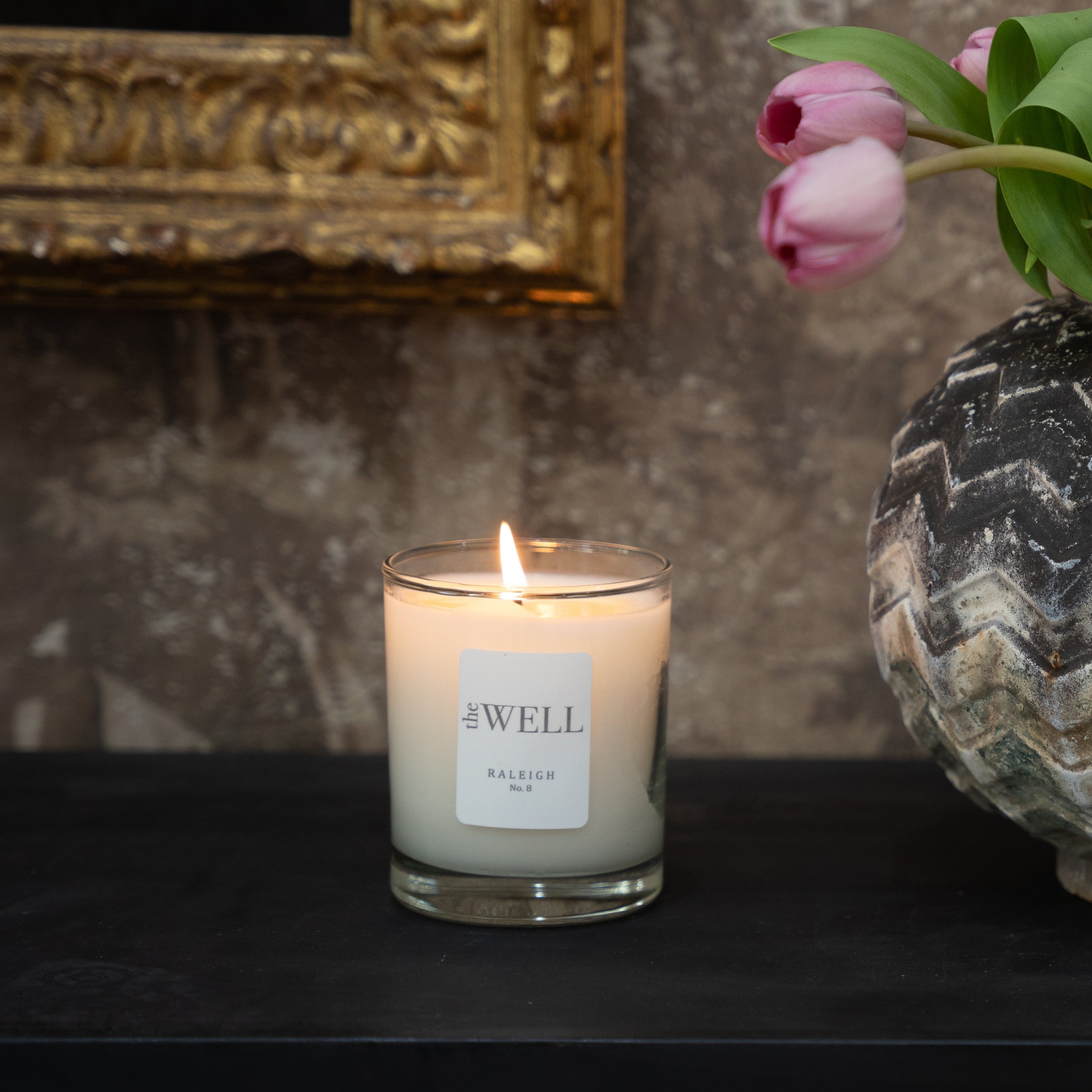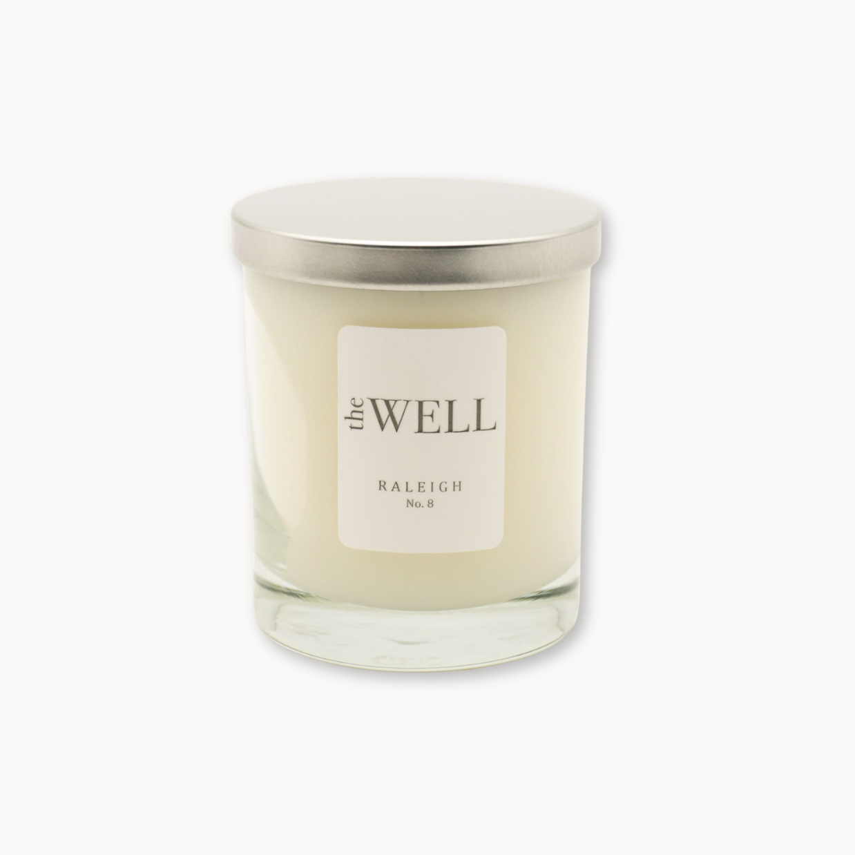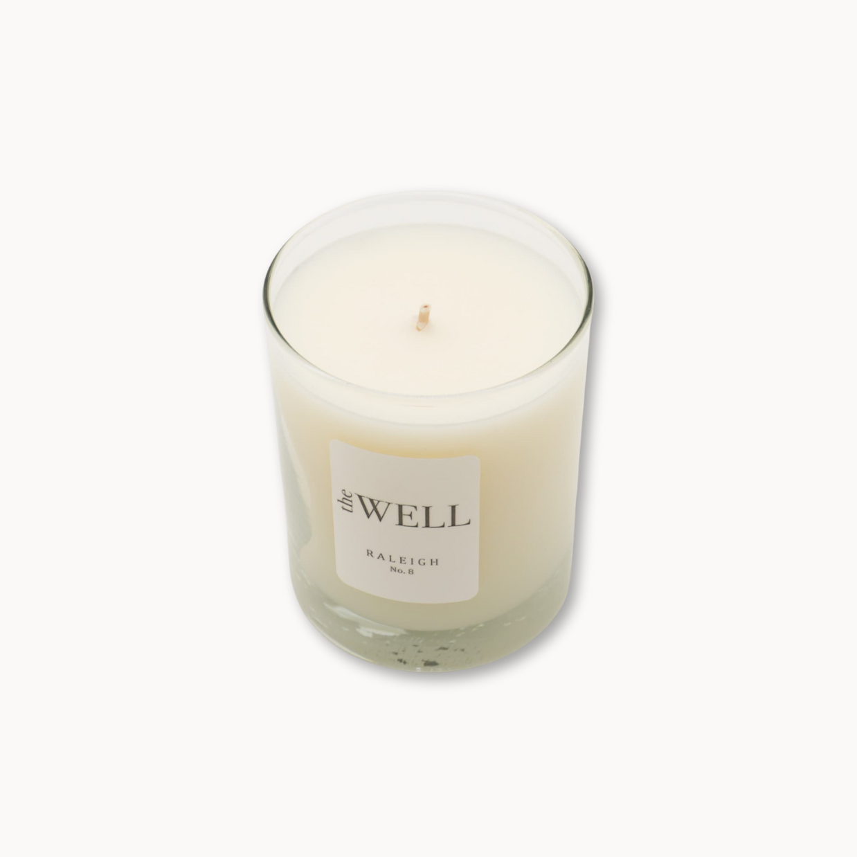 Indulge in the luxurious ambiance created by The Well Raleigh No. 8 Candle. Made with soy wax, this candle burns cleaner and longer while filling your space with a subtler, organic fragrance. The elegant glass vessel adds a touch of sophistication to your home decor. Experience a soothing and eco-friendly scent experience with The Well Raleigh No. 8 Candle.