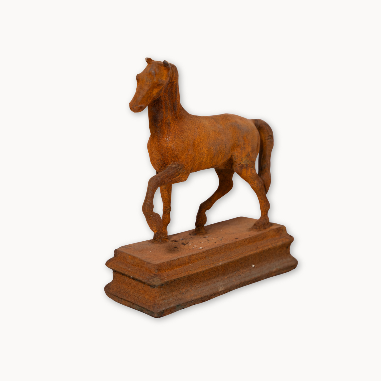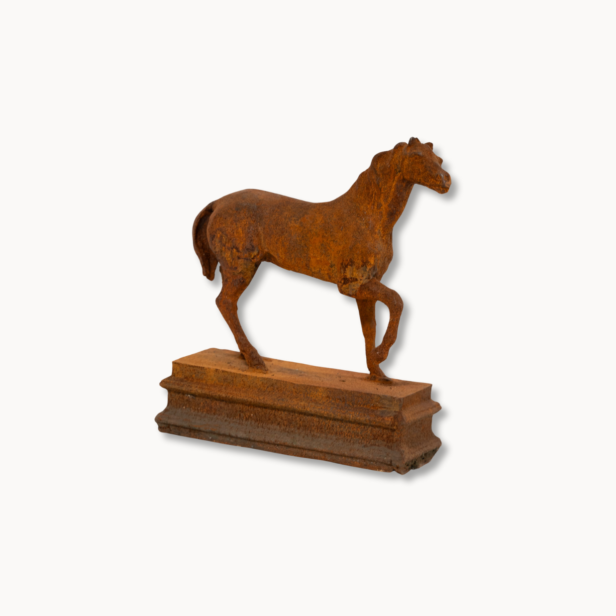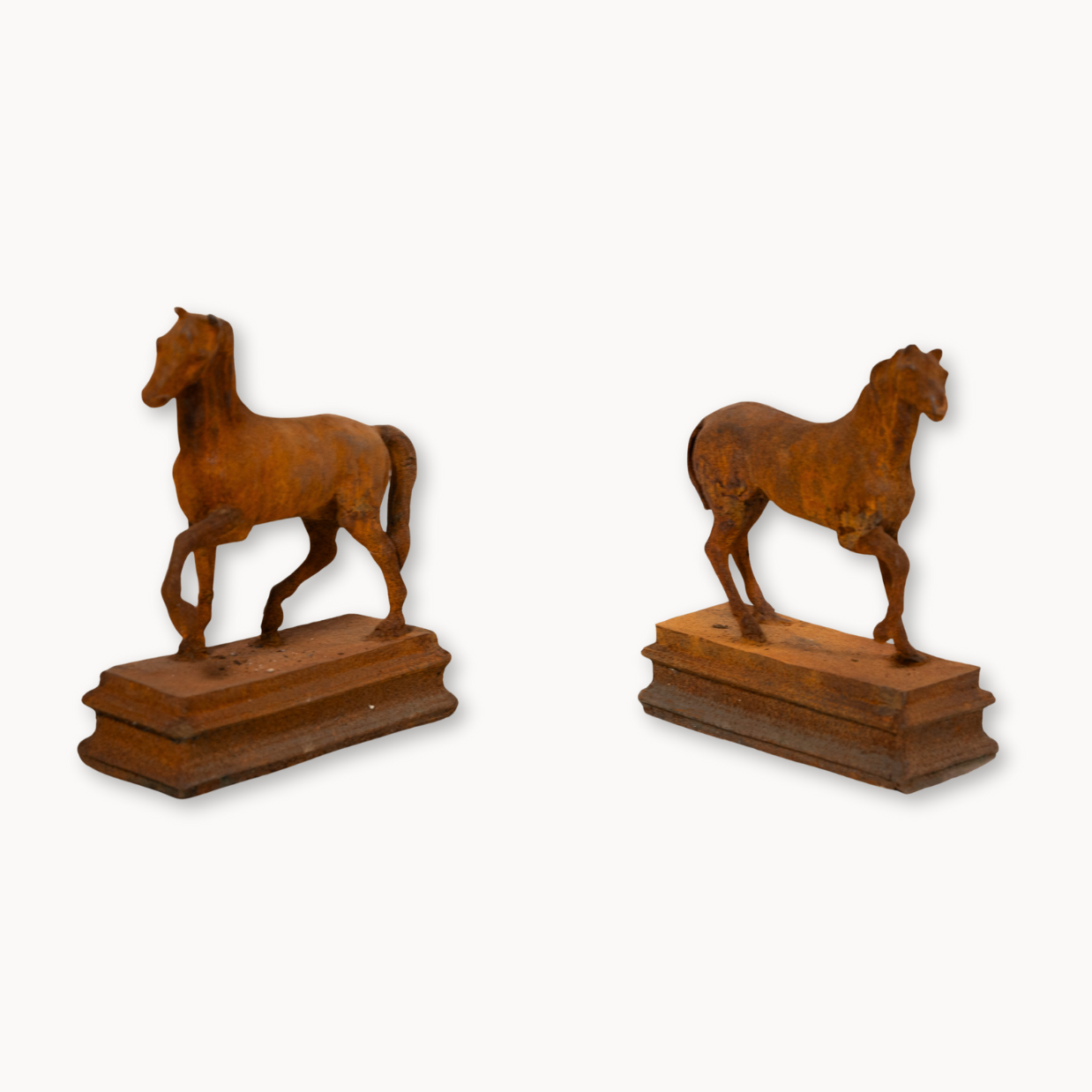 A timeless tribute to the elegance of the thoroughbred, this pair of statues captures the poised beauty and quiet energy of the breed. Perched on tiered bases with a rich, rusted patina, they lend a refined, heritage feel to shelves, consoles, or garden niches. Ideal for the equestrian enthusiast or design lover alike, they serve as both decor and a personal emblem of admiration. Let them bring a sense of grace, movement, and meaning to any well-styled space.
