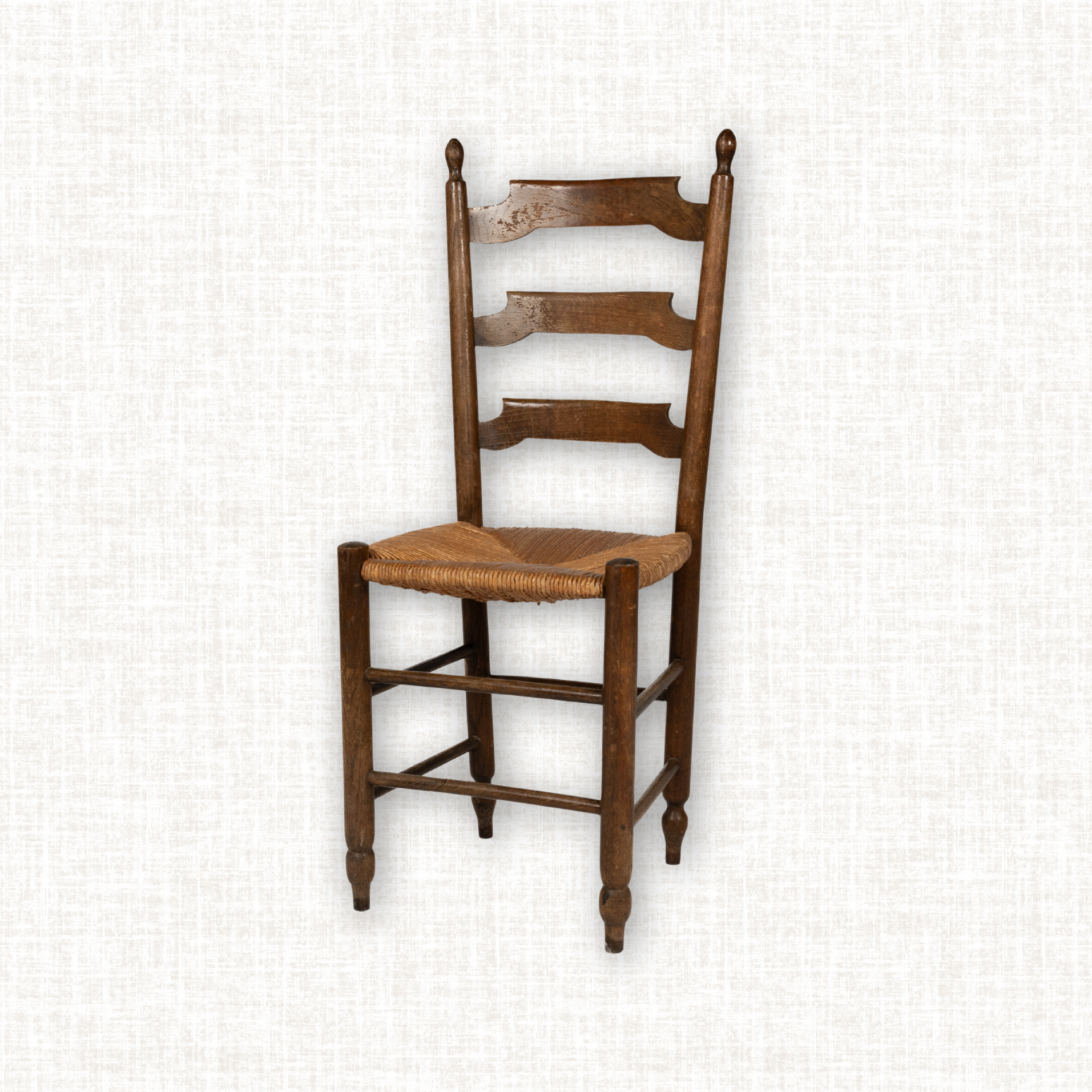 Introducing the Parisian Ladder Back Chair, a beautifully carved vintage piece crafted from rich walnut. This chair features a classic ladder back design that has been beloved for centuries, updated with intricate French detailing that adds an air of sophistication. The natural grain of the walnut wood is enhanced by a warm finish, highlighting the craftsmanship and quality of the material. Perfect for adding a touch of vintage charm to your dining room or as a standalone accent in a cozy corner, this chair offers both comfort and timeless style. Its sturdy construction and elegant aesthetic make it a cherished addition to any home, blending seamlessly with both modern and traditional decors.