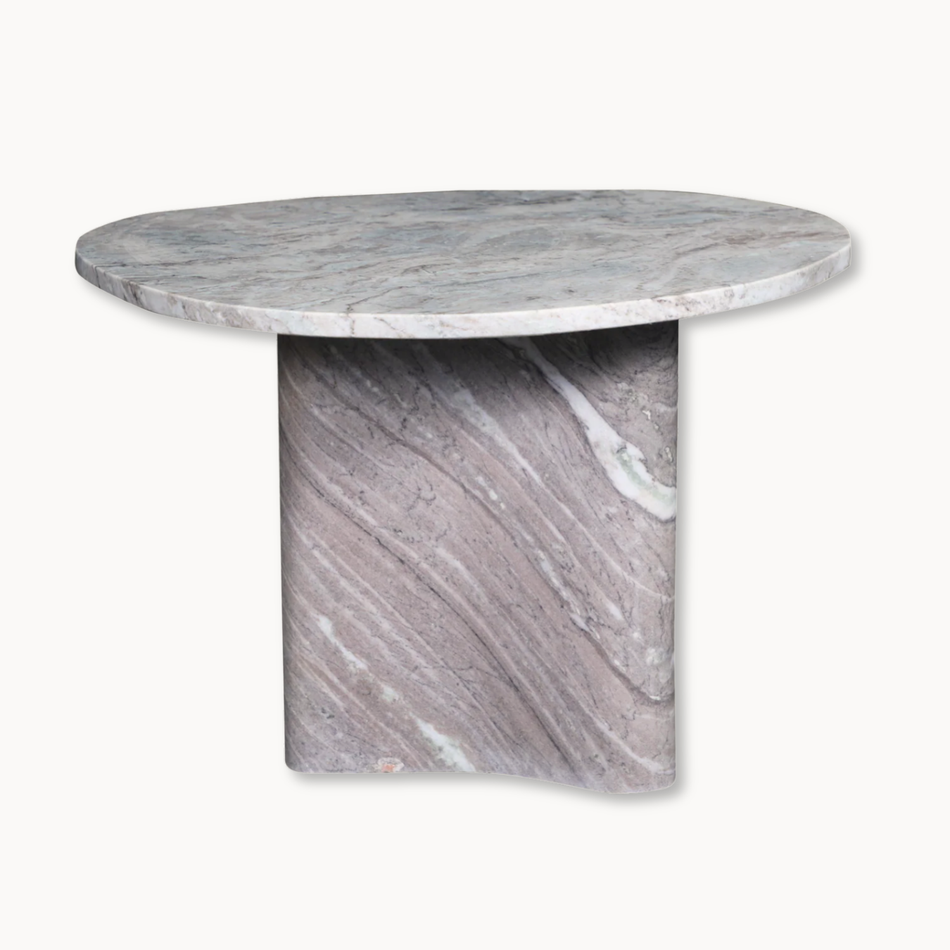 The Verona Coffee Table exudes modern elegance with its minimalist silhouette and luxurious stone construction. Crafted from richly veined marble, its organic shaped base supports a smooth, rounded top, creating a bold yet refined centerpiece. The natural striations in the marble make each table truly one-of-a-kind. Perfect for contemporary and sophisticated interiors, the Verona Coffee Table brings timeless beauty and grounded style to your living space.
