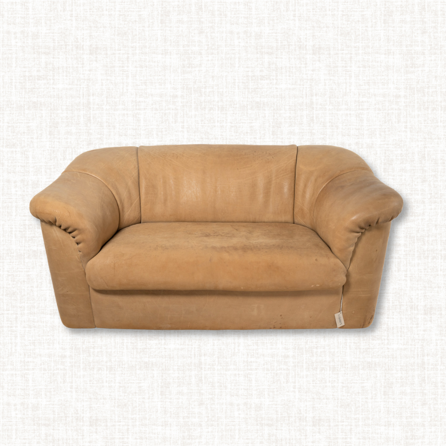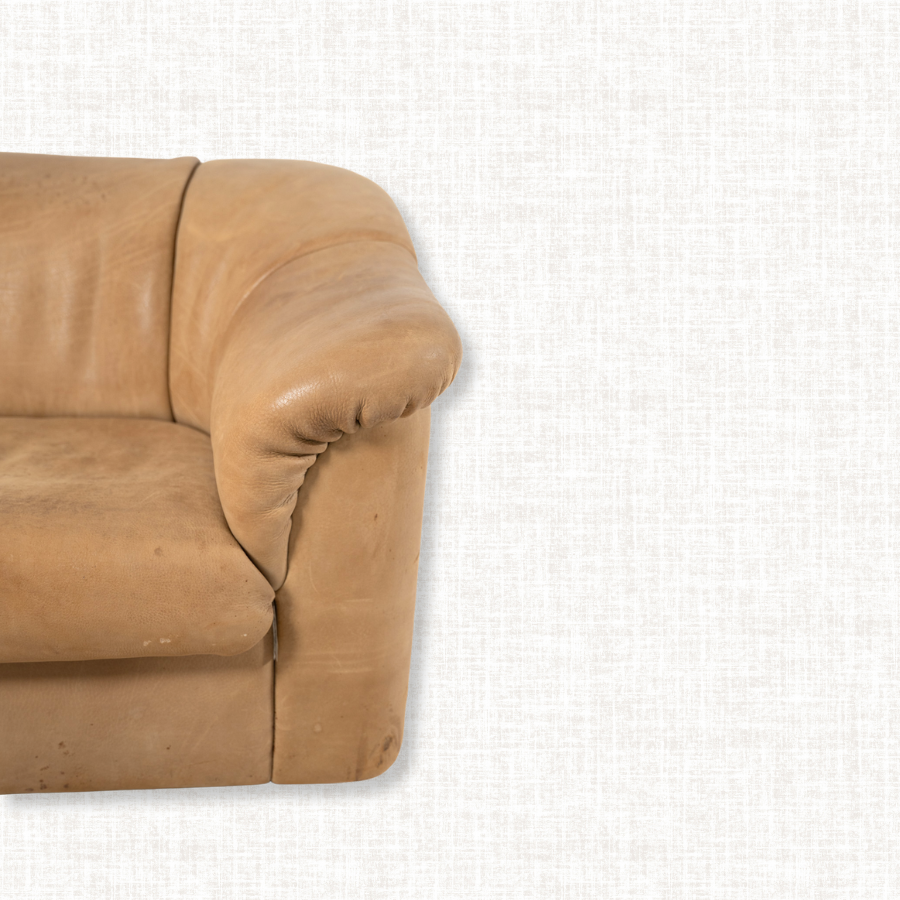 Indulge in luxury with our Vintage 1970's de Sede Bull Neck Leather Sofa. Handcrafted with genuine leather, this sofa will elevate your living room experience. Unwind and relax on its comfortable and stylish design. Upgrade your home with this quality piece now.
