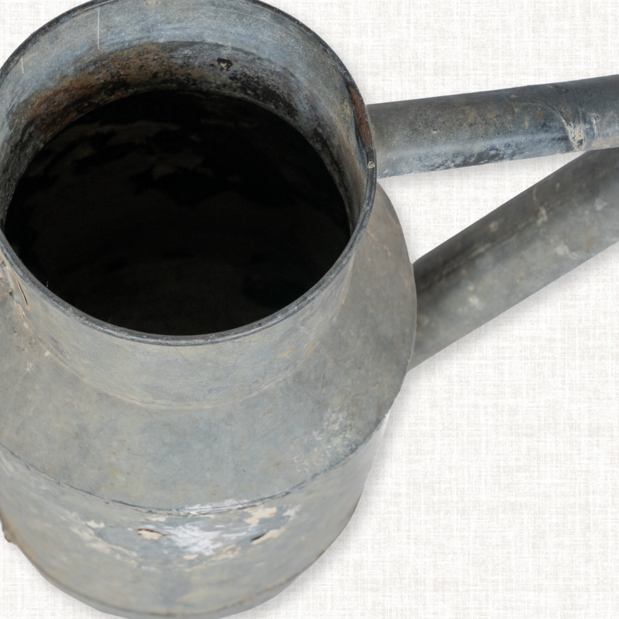 Crafted with enduring galvanized metal, this vintage watering can combines rustic charm with practical design. Its weathered finish adds character, making it a refined accent for garden lovers or a unique decor piece that evokes timeless elegance and utility. No two watering cans are alike!