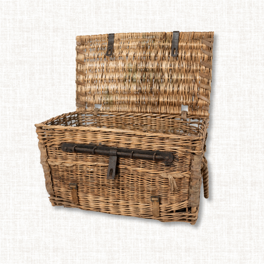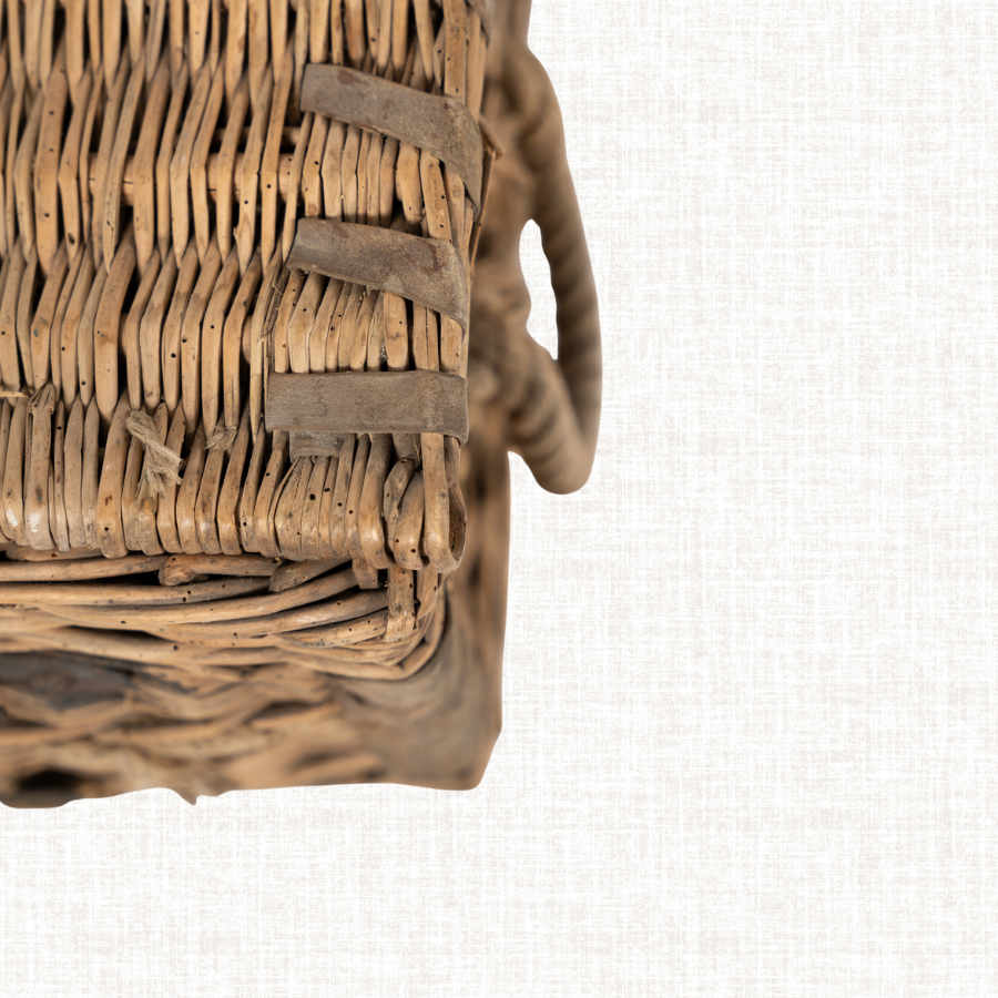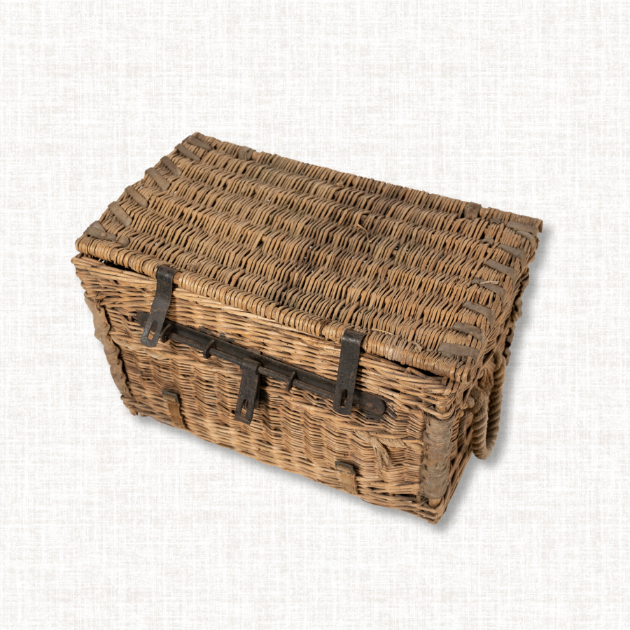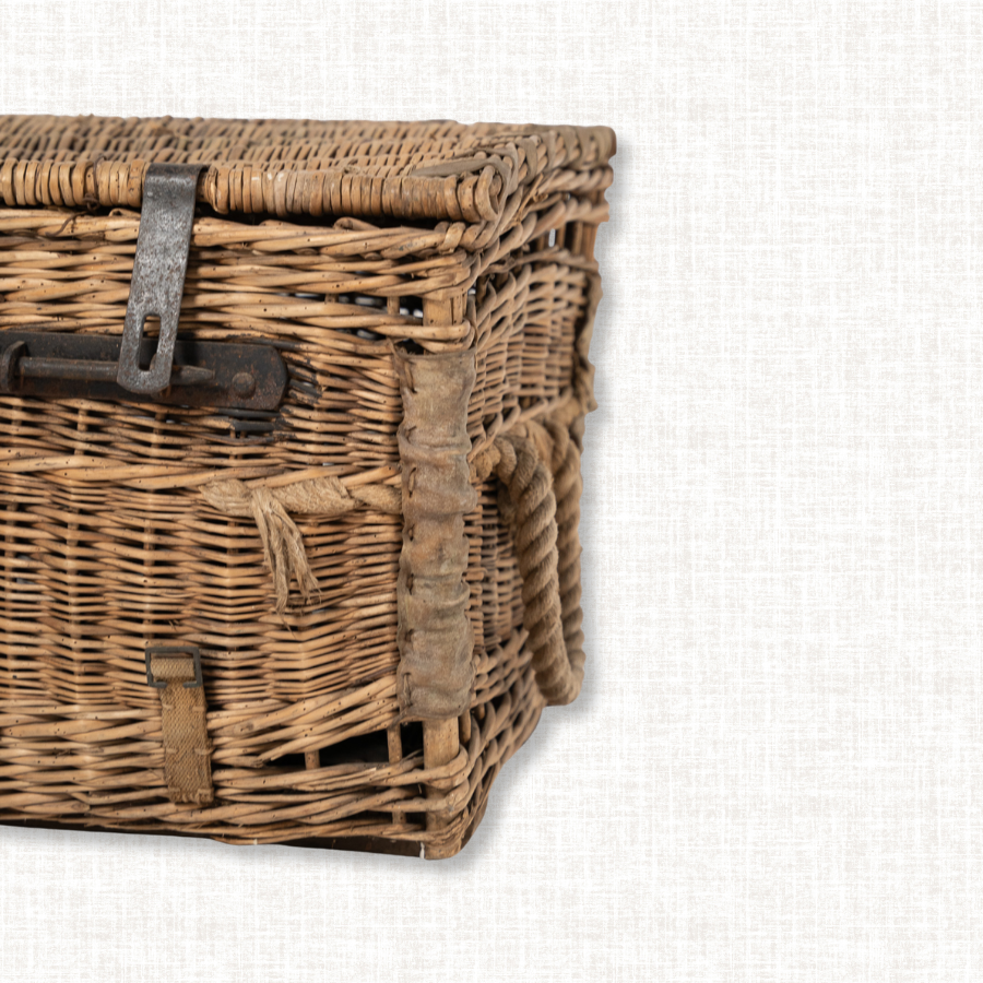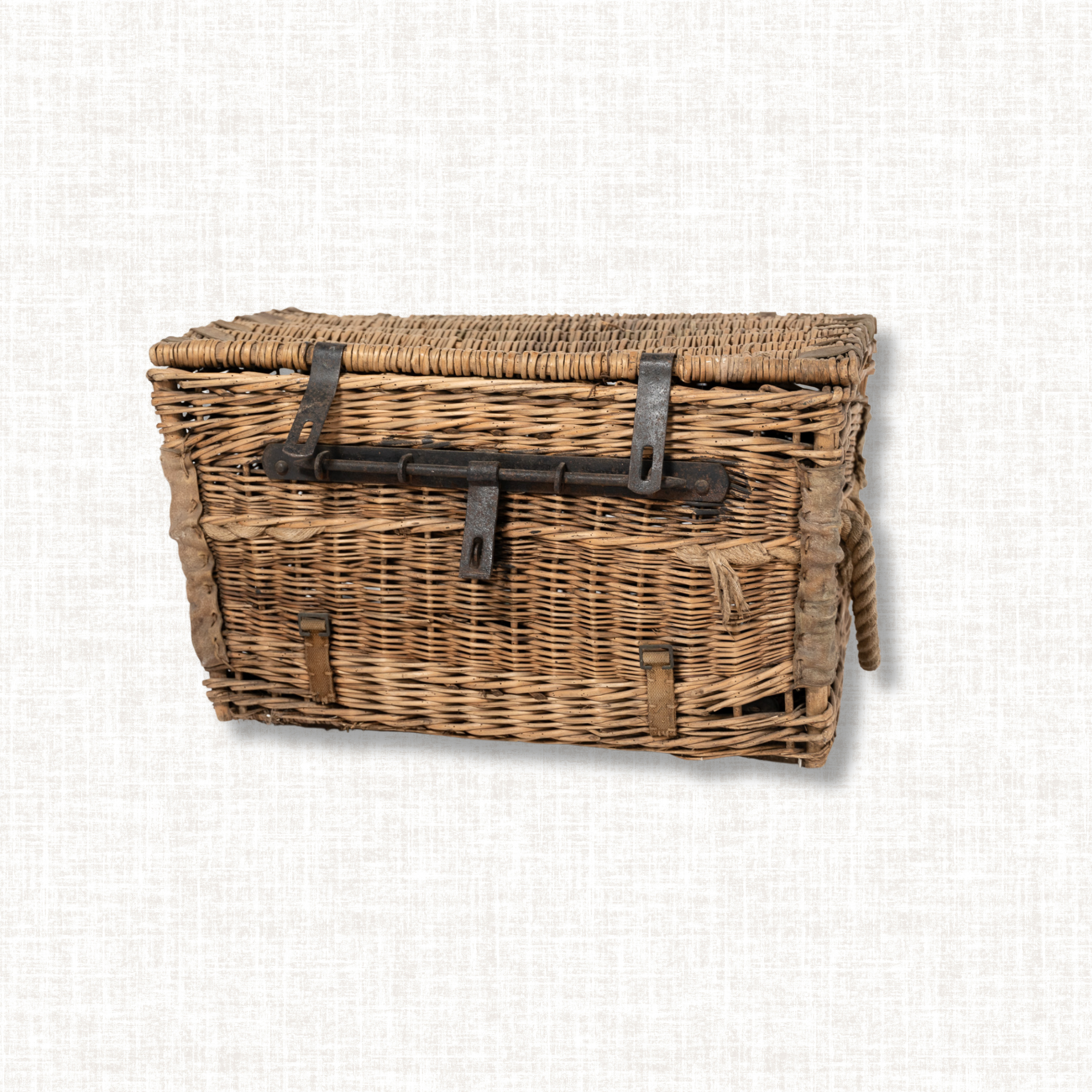 Once used as a WWII parachute supply drop basket, this vintage Wicker Storage Chest carries a storied past and timeless utility. Made with high-quality wicker material, this chest adds a touch of elegance to any room while providing ample storage space. Say goodbye to clutter and hello to style and organization! Its weathered patina and metal hardware lend authentic character, making it as decorative as it is functional.